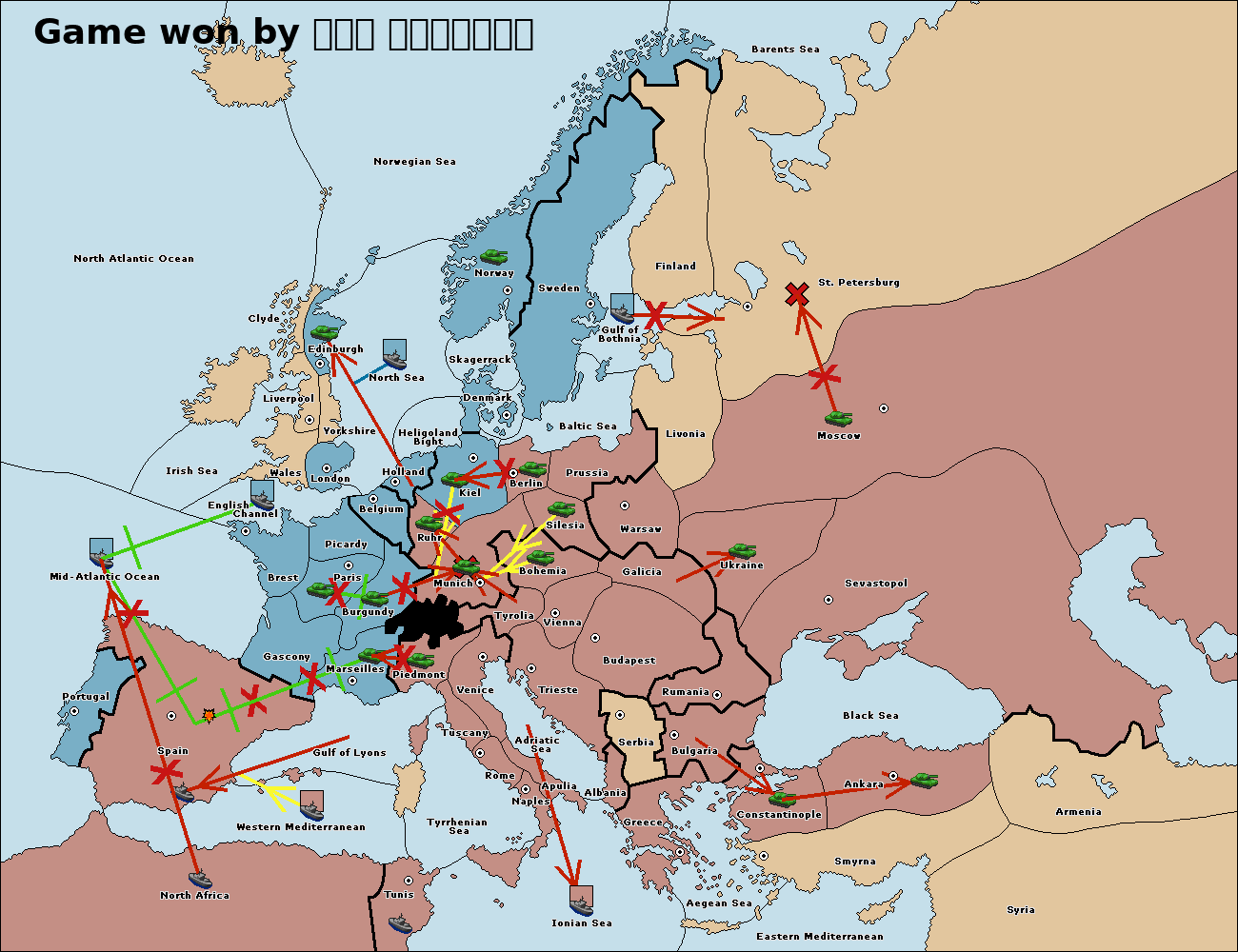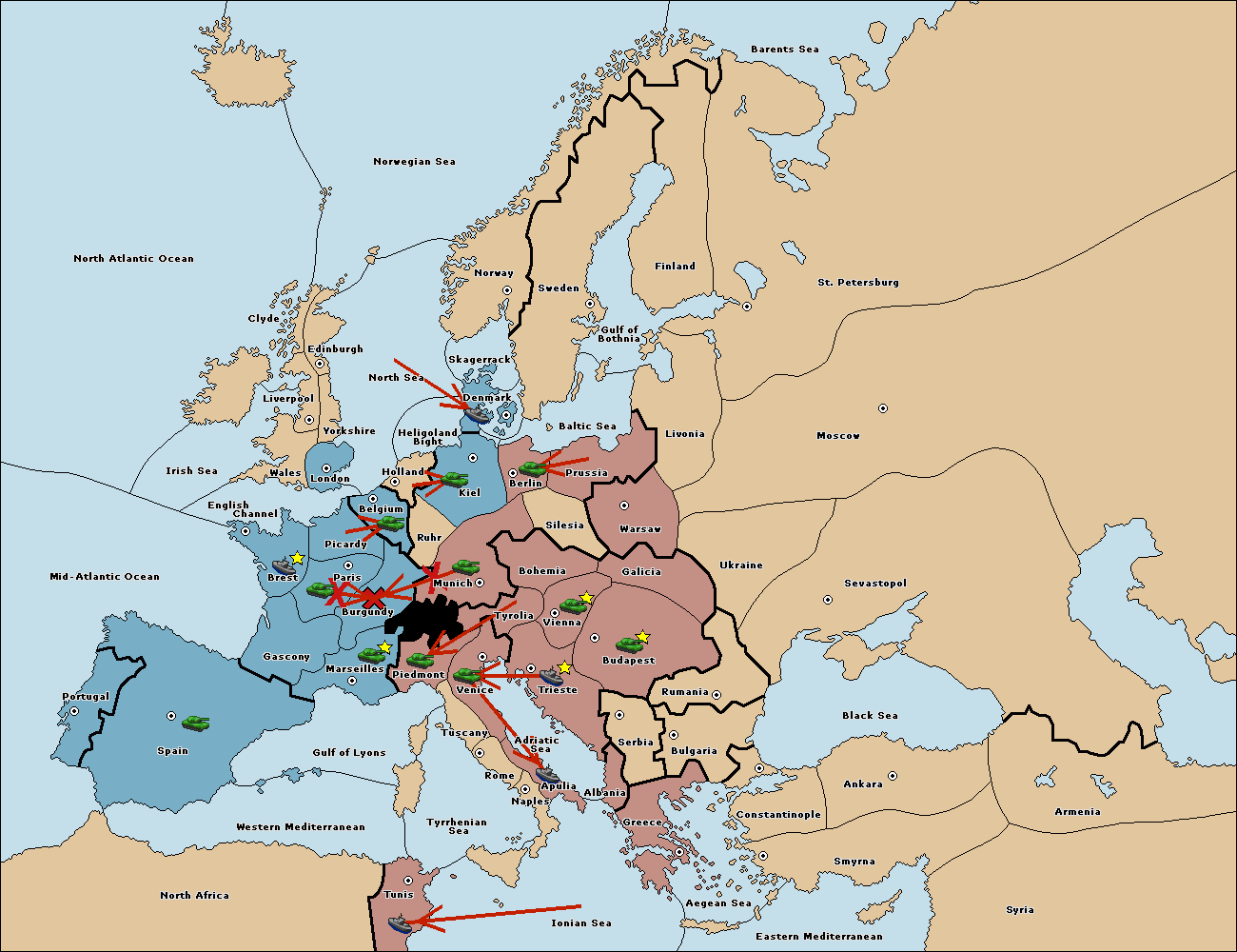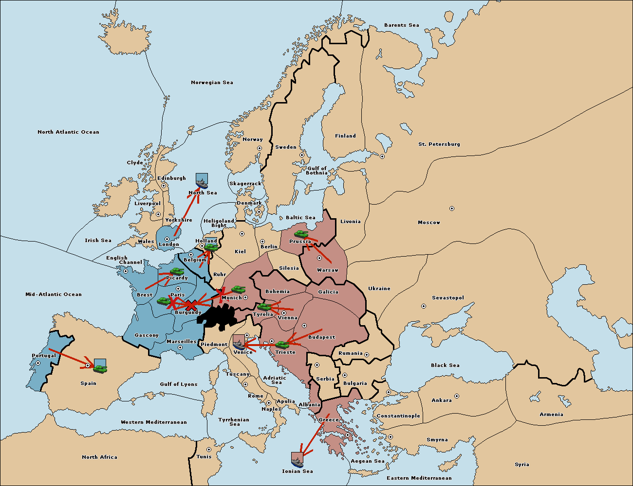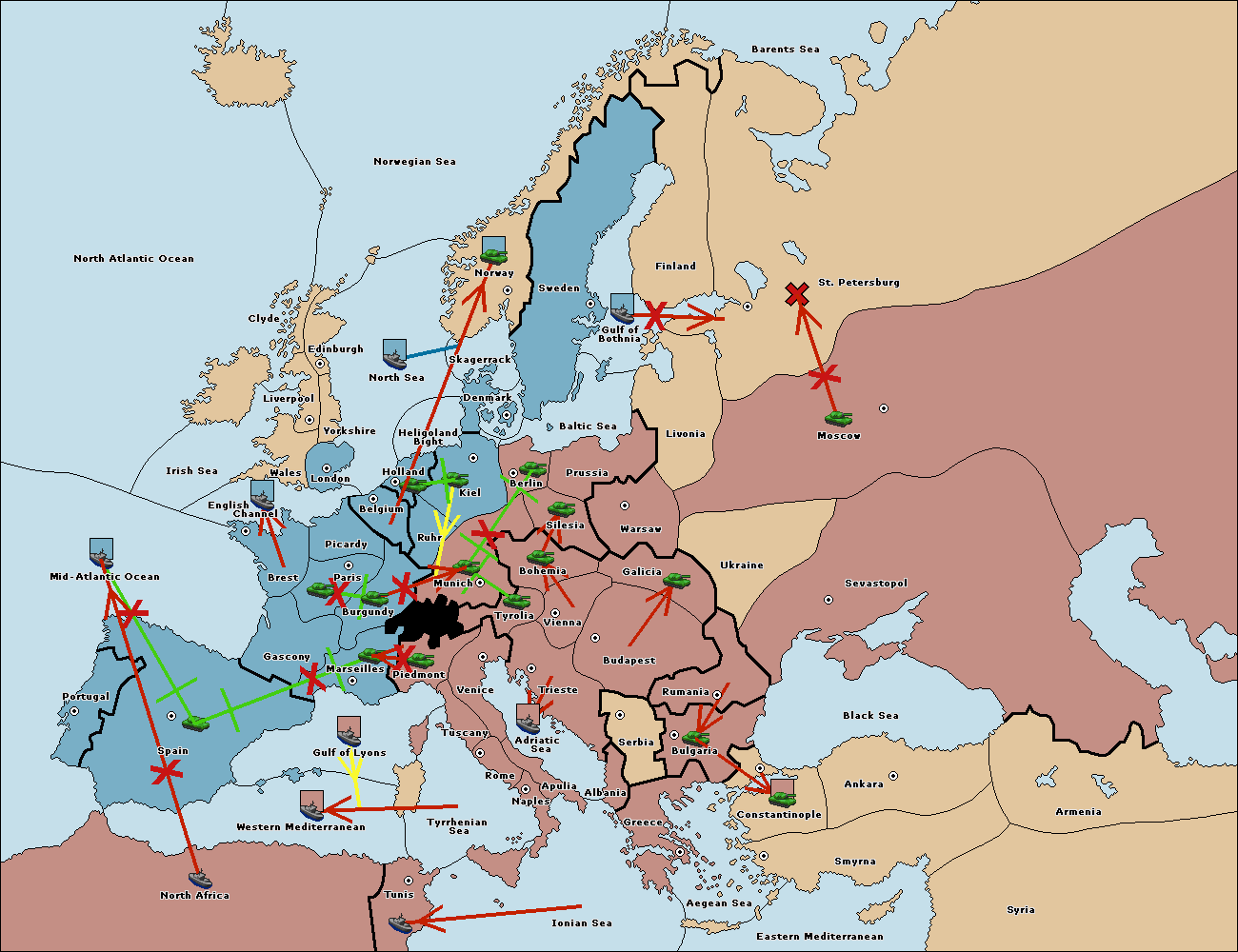 The fleet at Mid-Atlantic Ocean move to Western Mediterranean.