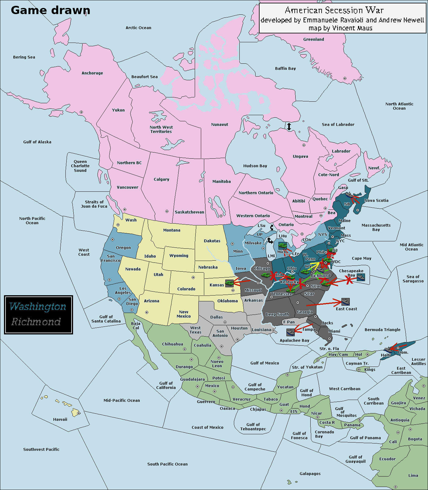 Fall of the American Empire: Civil War!, Банк победителю, Только общие сообщения, С выбором страны