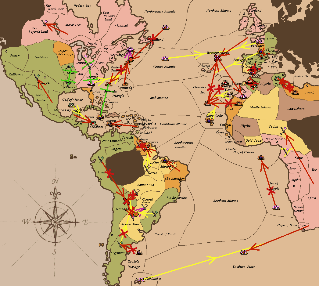 Atlantic Colonies, Очки за центры, Без переписки, Анонимная