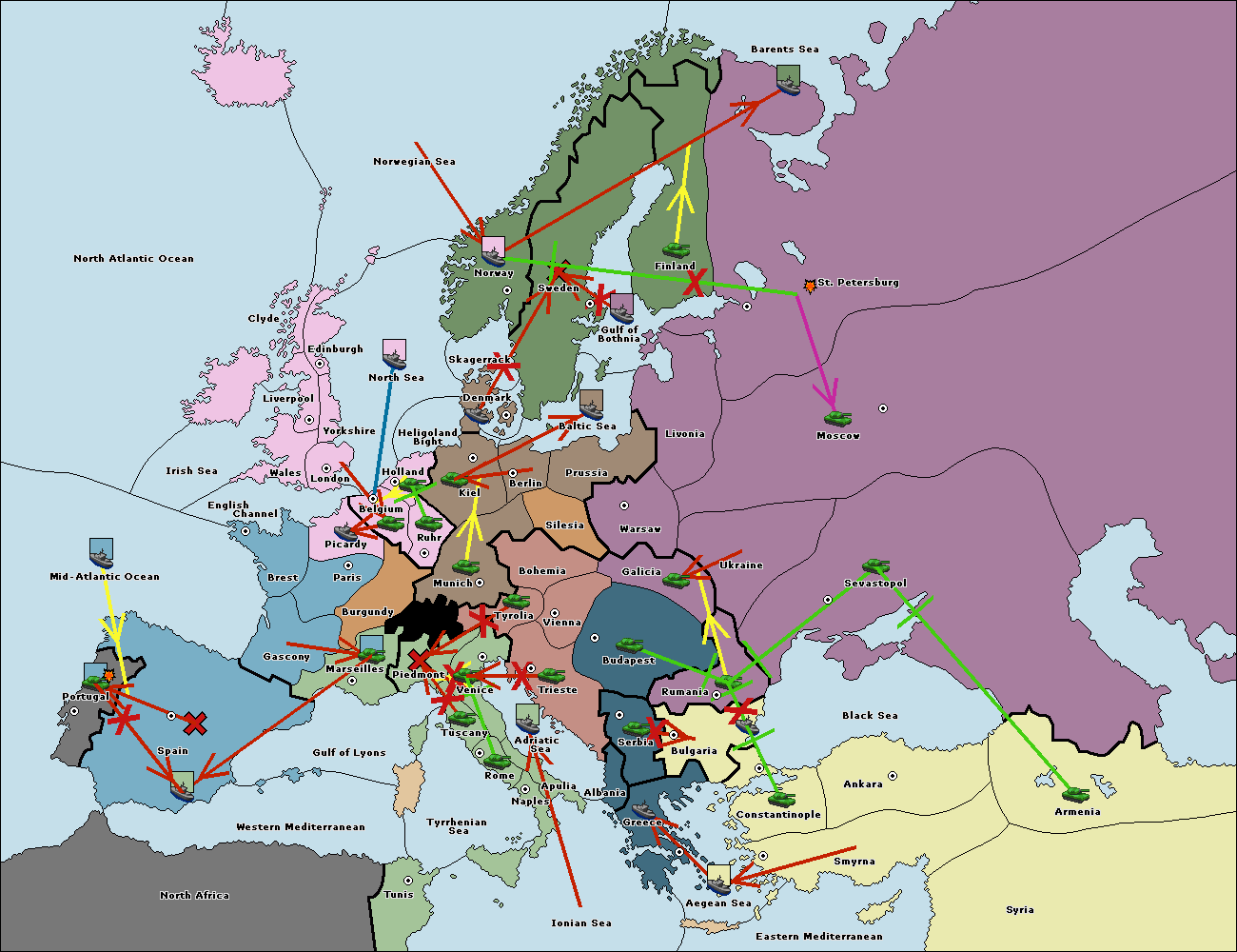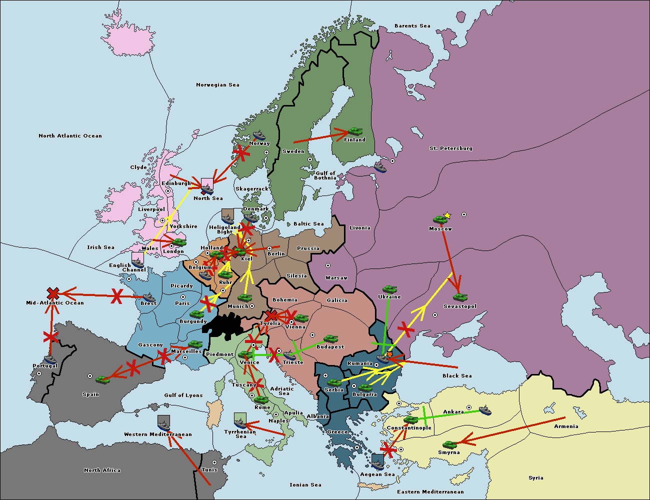 The fleet at Rumania support move to Sevastopol from Moscow.