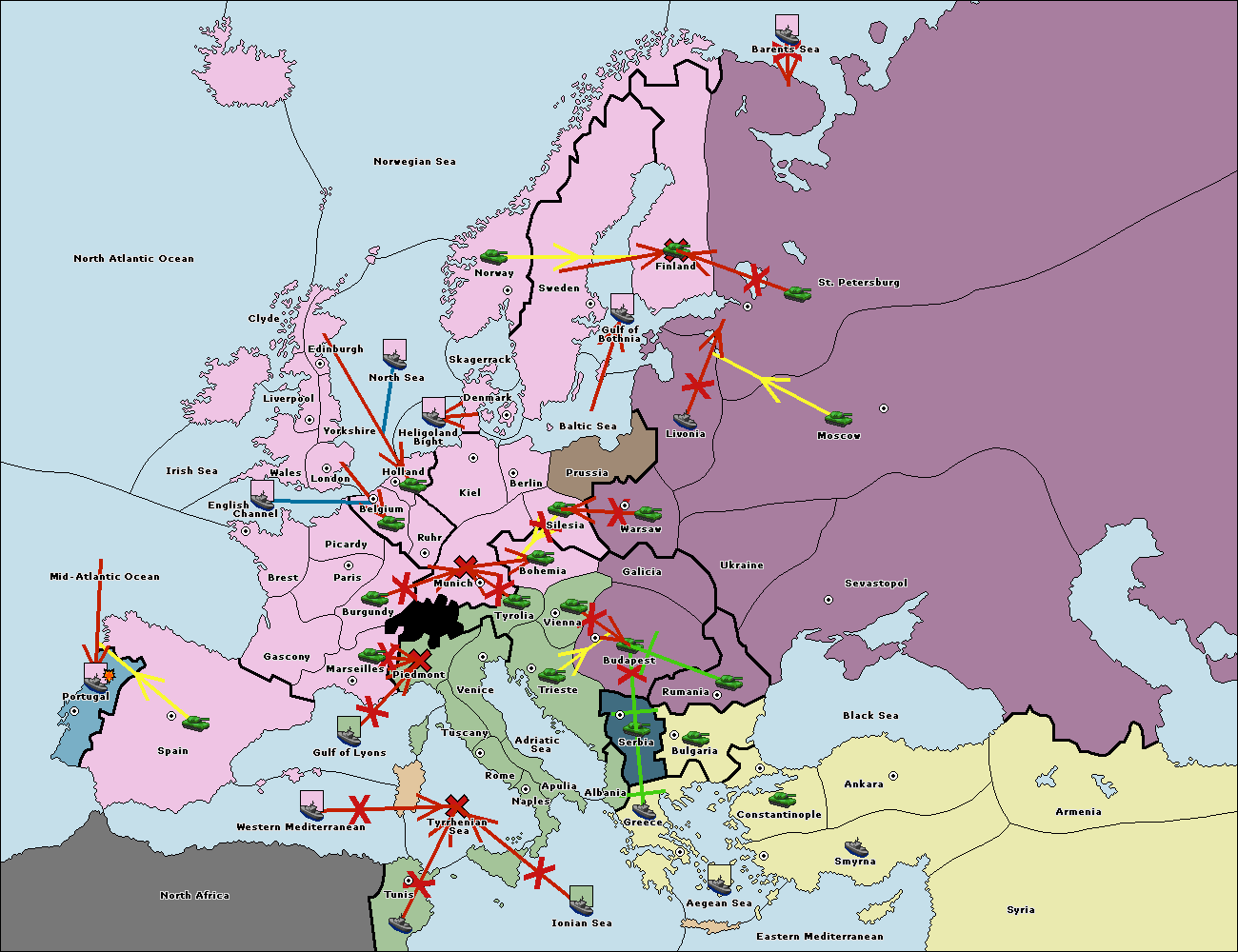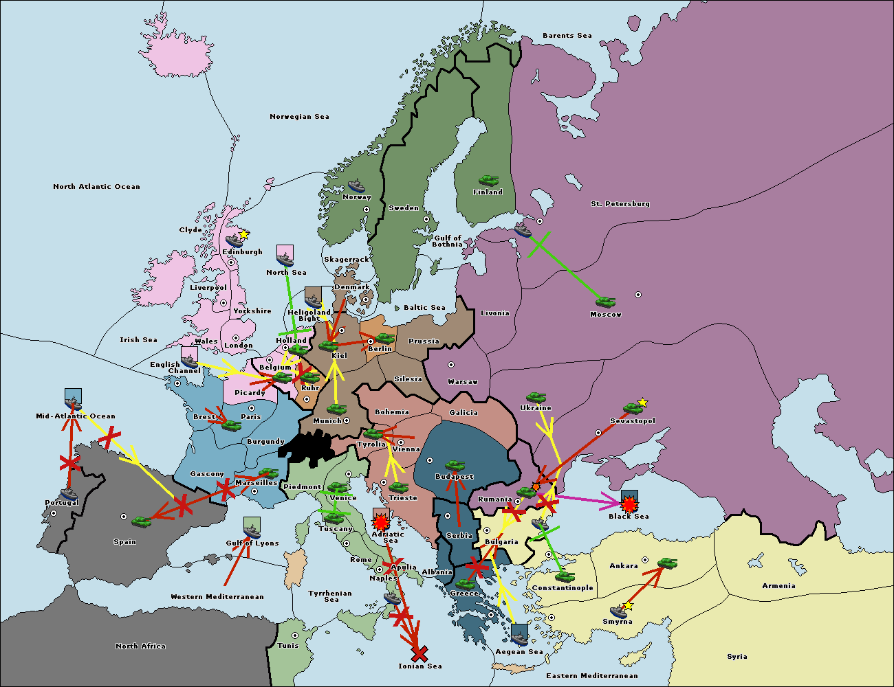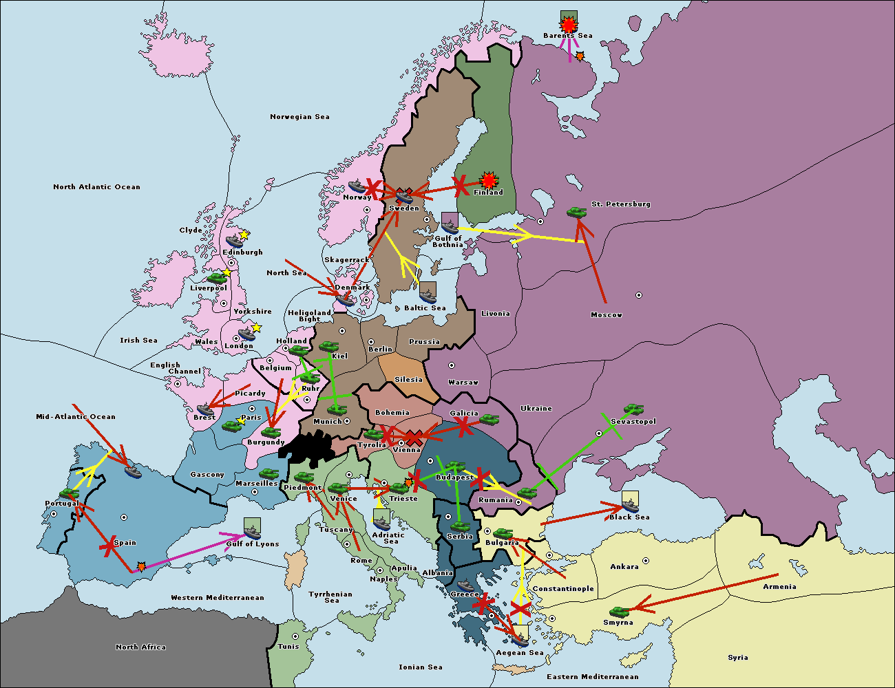 The fleet at Bulgaria (North Coast) support move to Rumania from Sevastopol.