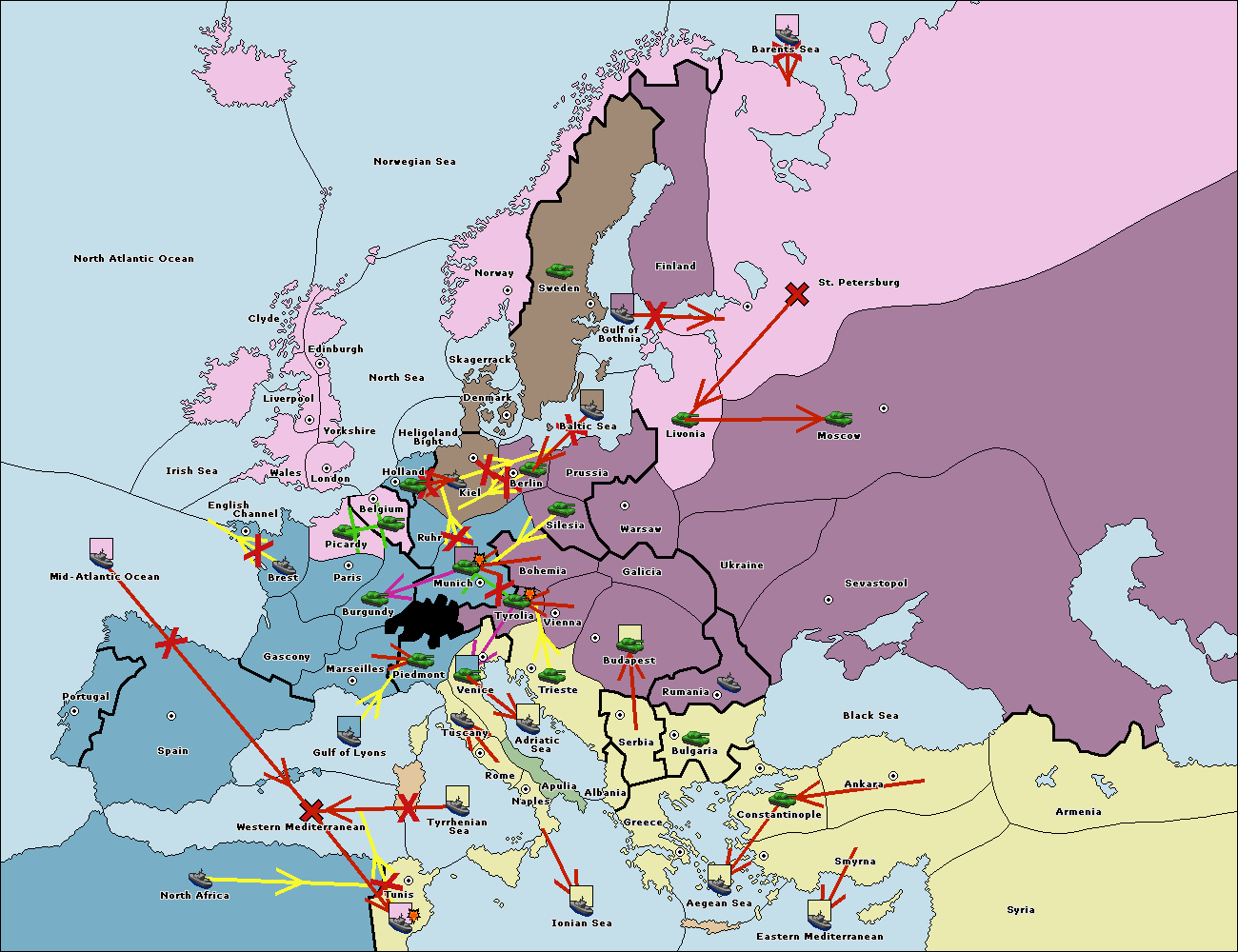 The fleet at Greece move to Bulgaria (South Coast).