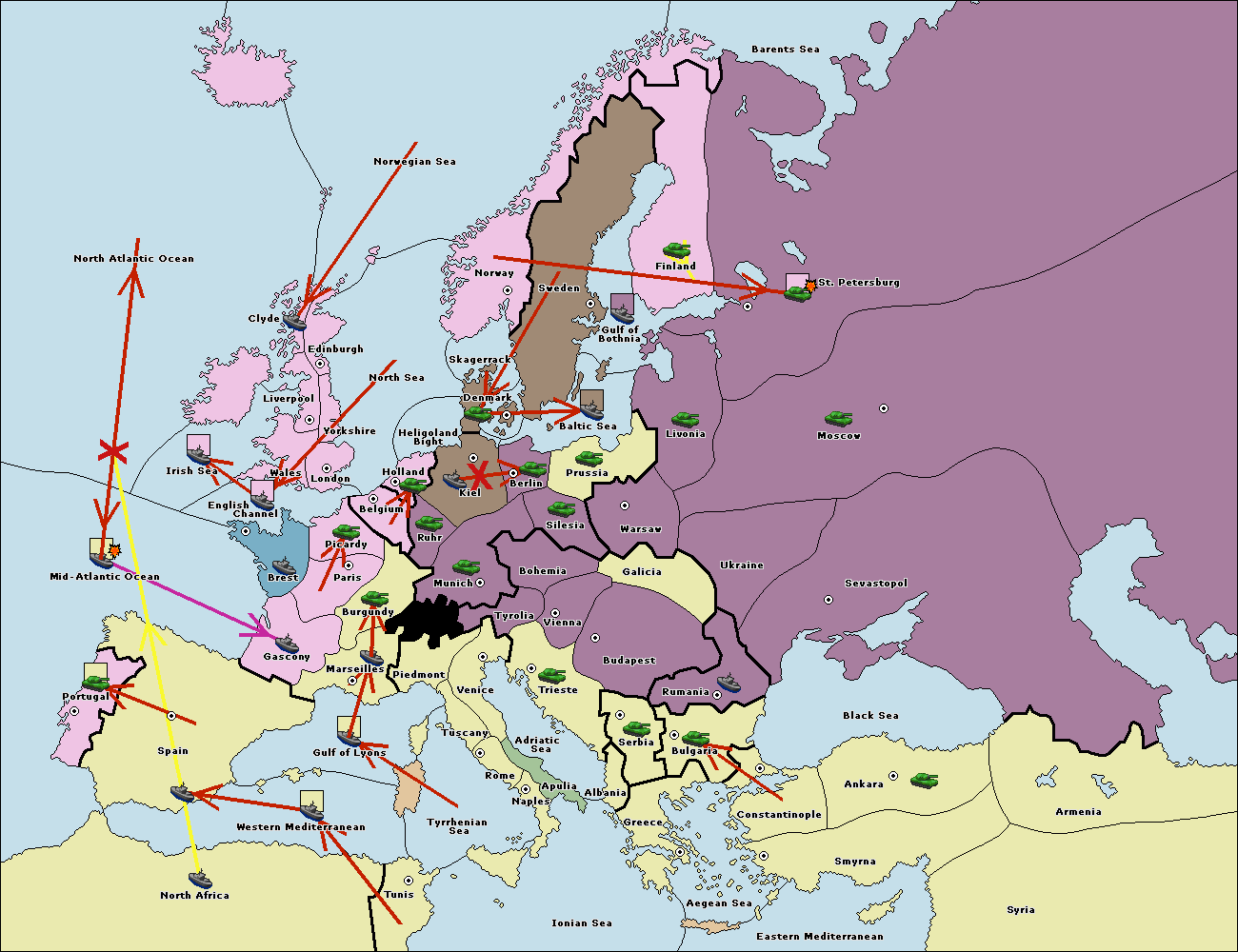 The fleet at North Africa support hold to Mid-Atlantic Ocean.