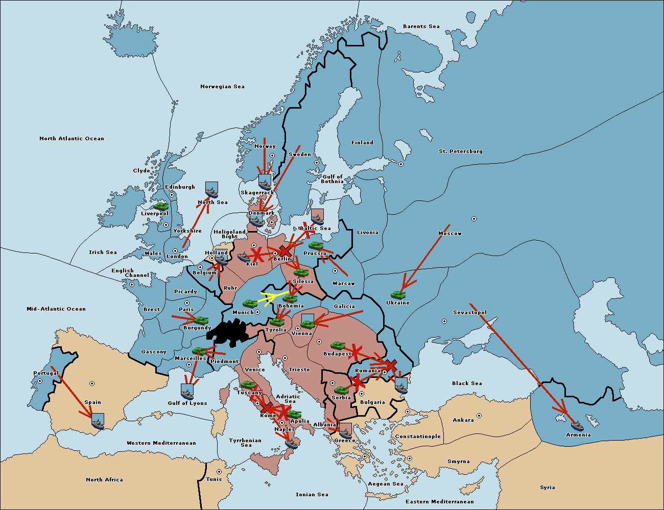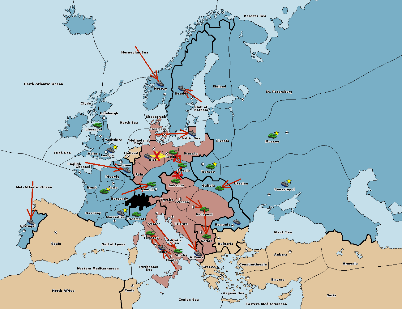 The fleet at Kiel support hold to Denmark.