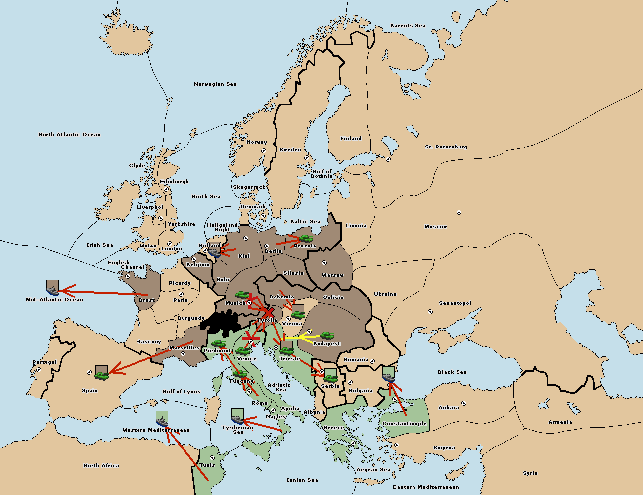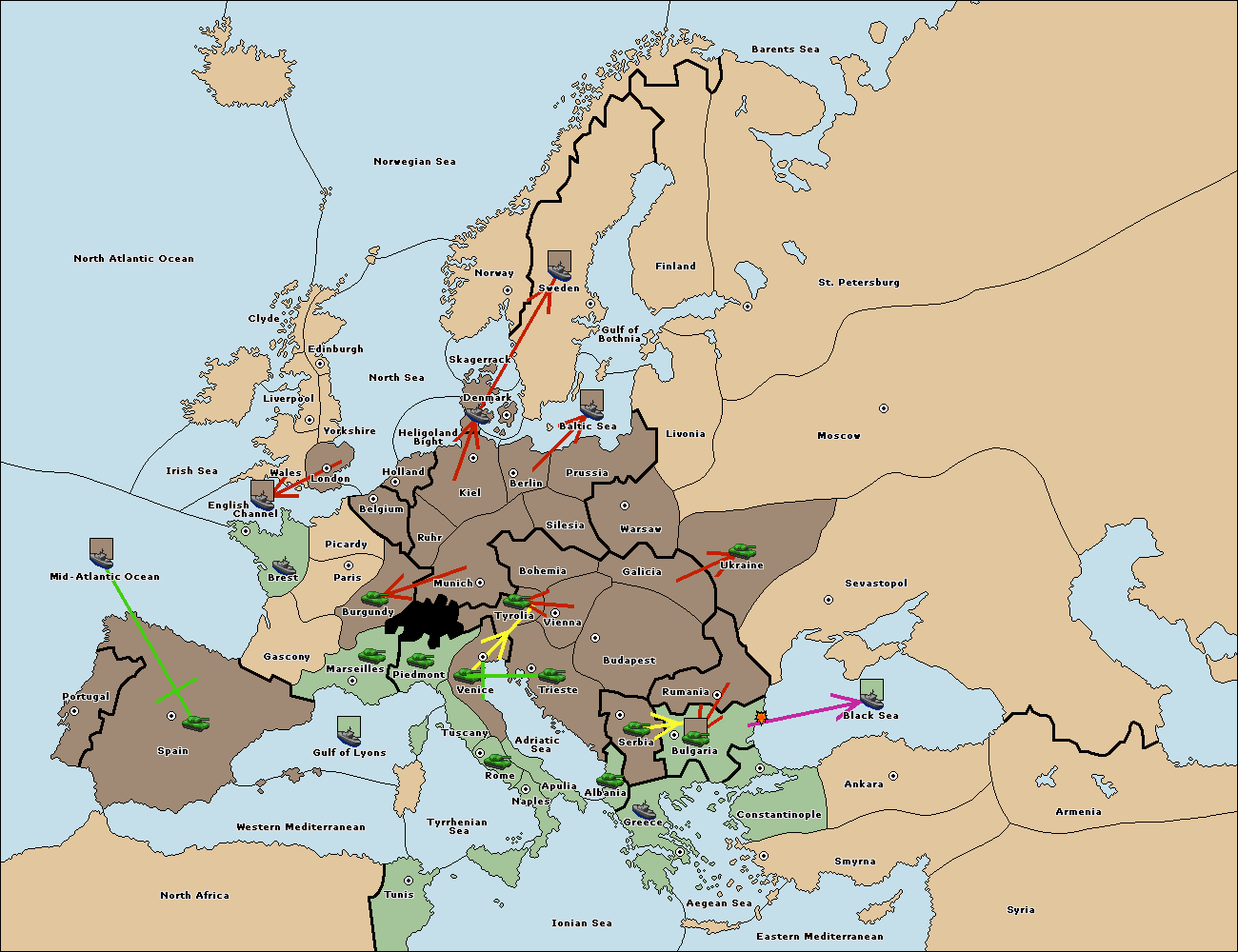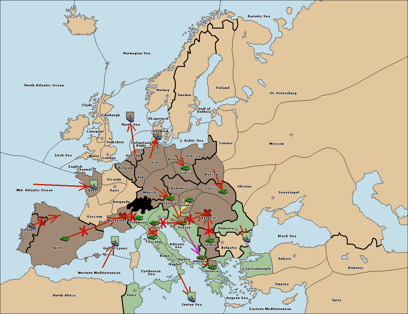 The fleet at Bulgaria (North Coast) move to Rumania.