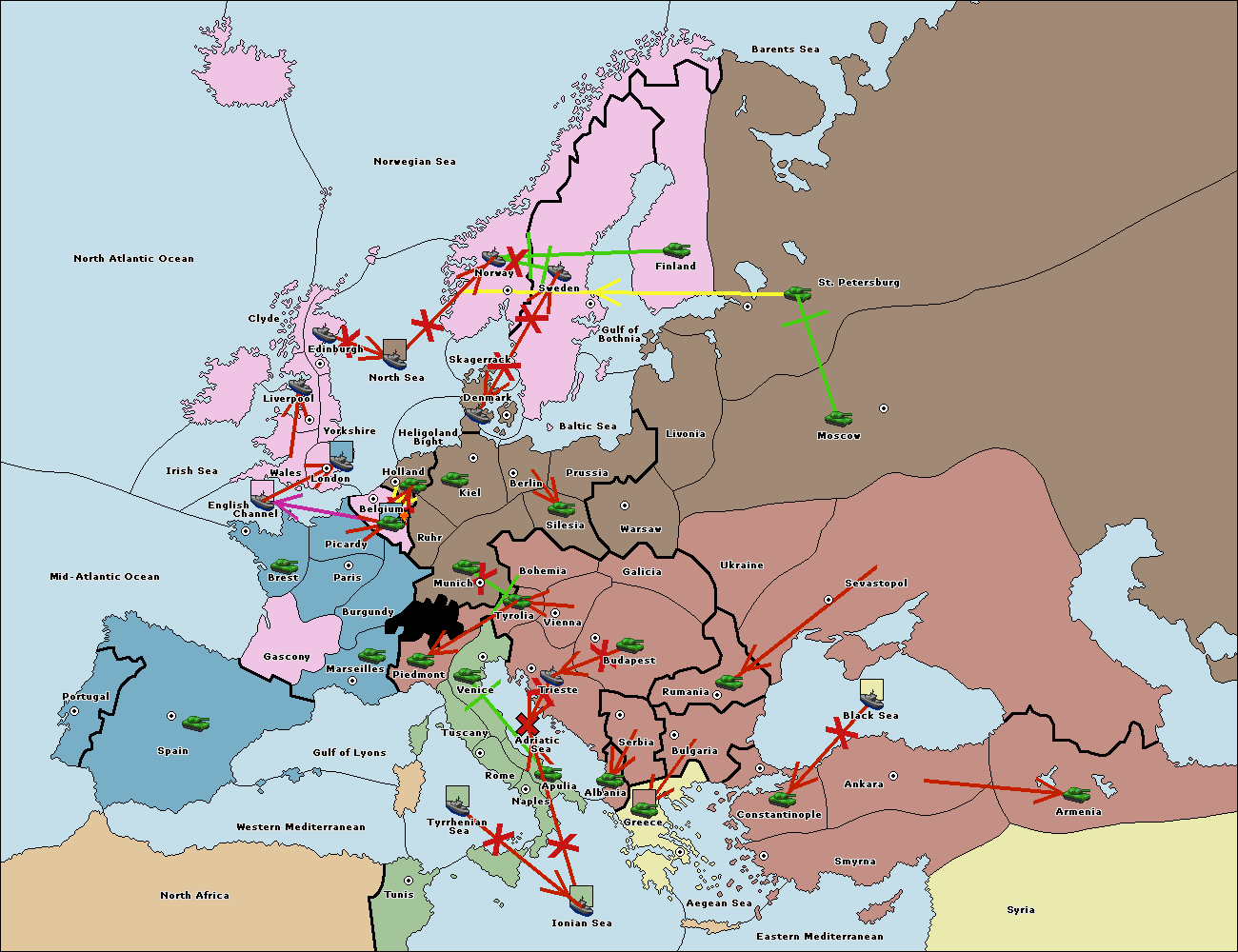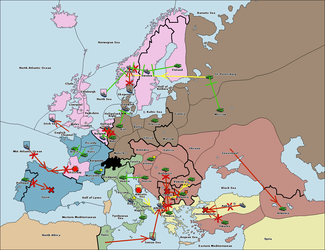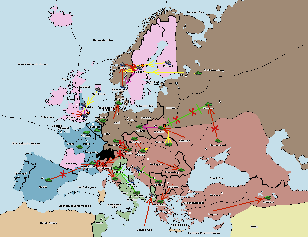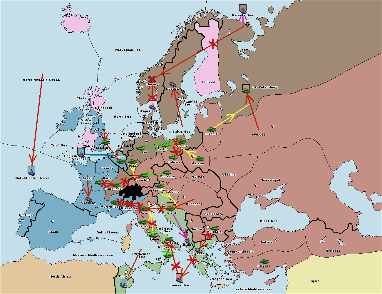 The fleet at Mid-Atlantic Ocean move to Western Mediterranean.