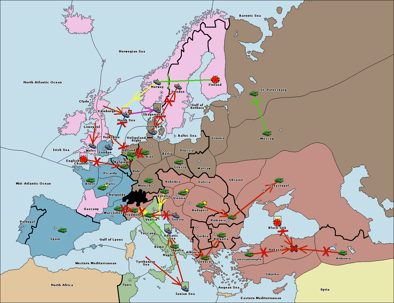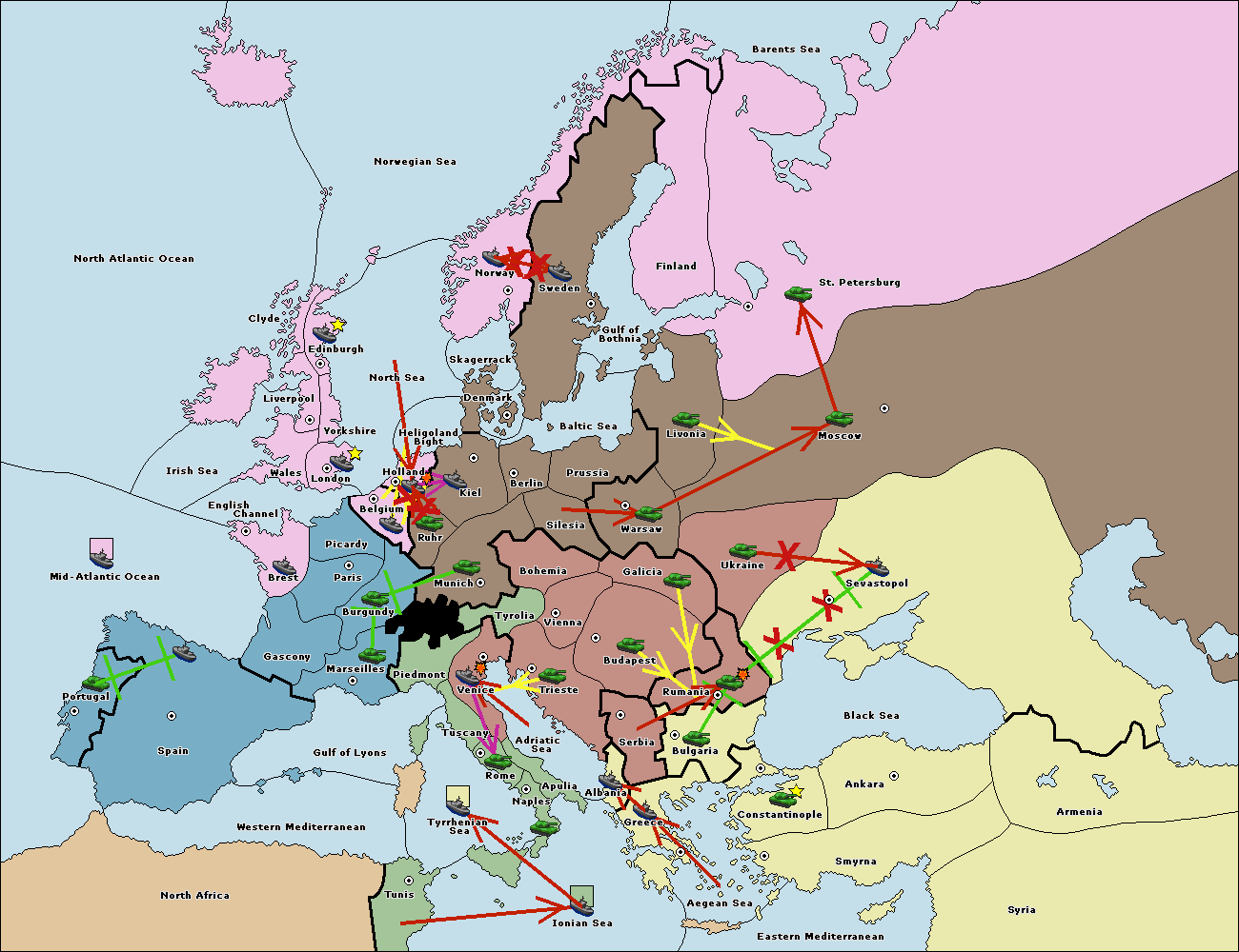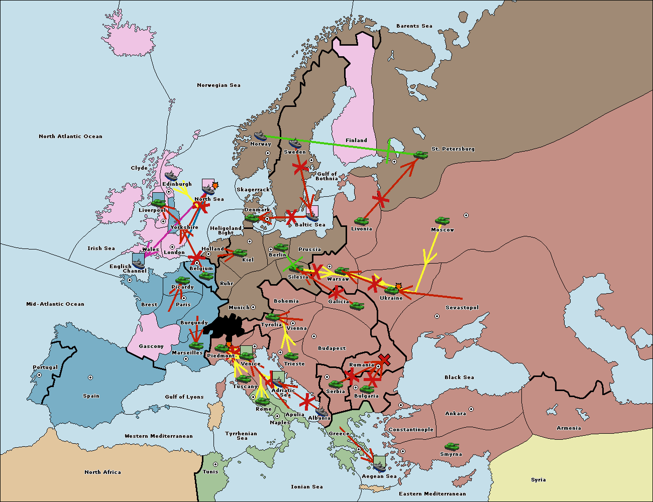 The fleet at Sevastopol support move to Rumania from Galicia.