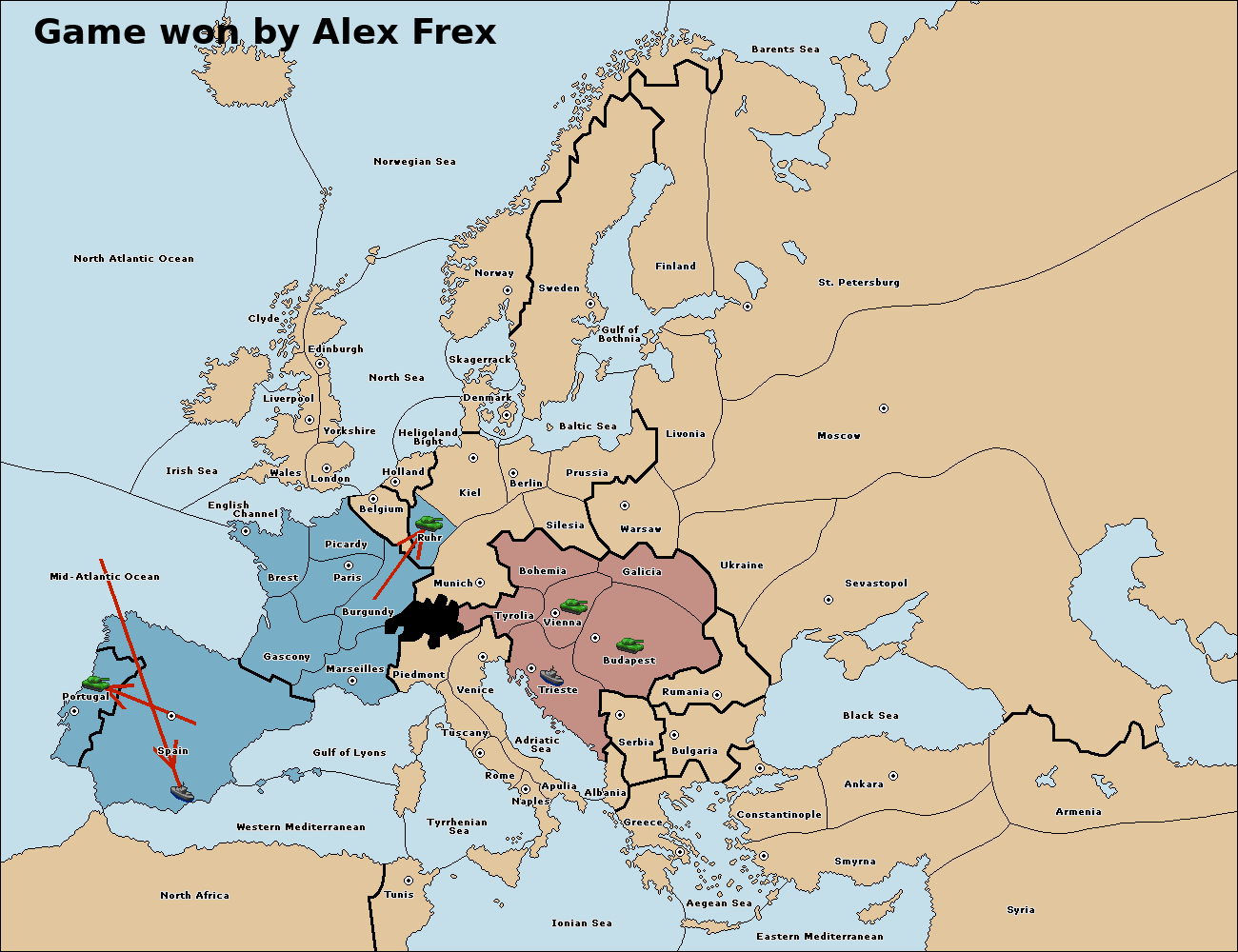 The fleet at Mid-Atlantic Ocean move to Spain (South Coast).