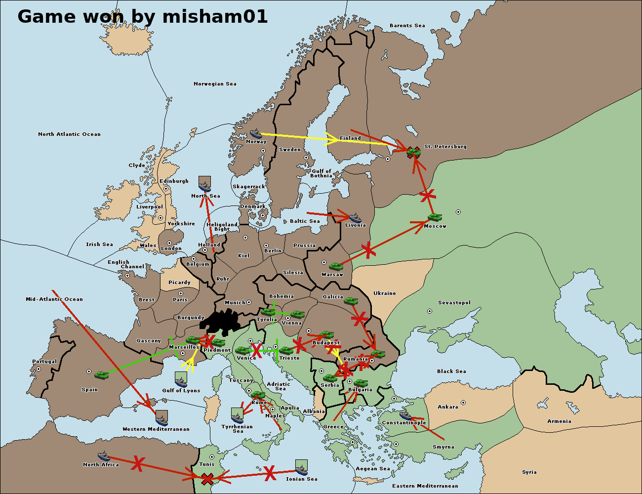 Неудачные приказы обычно отображаются только на большой карте ().