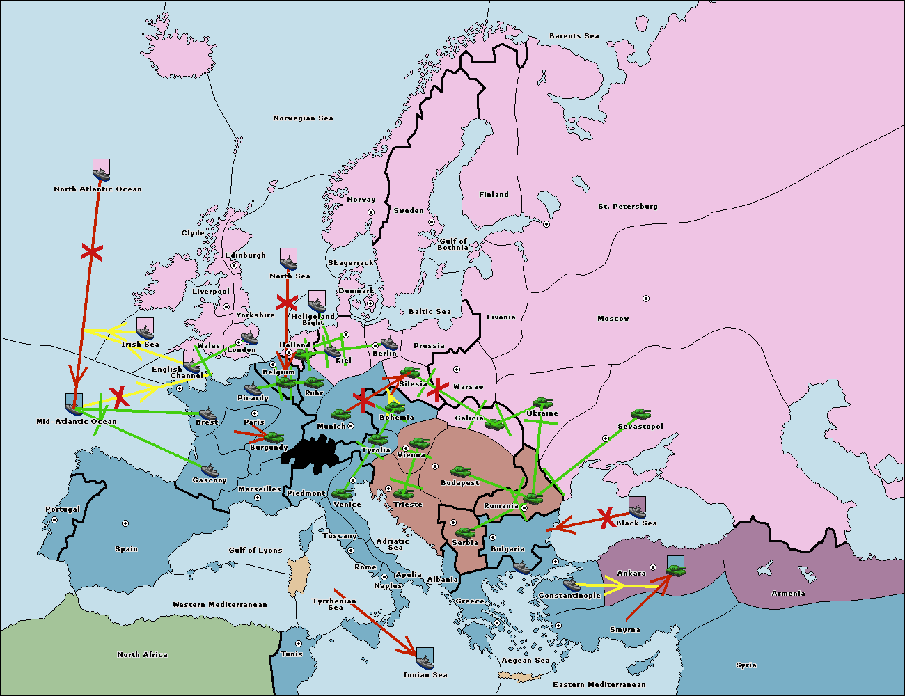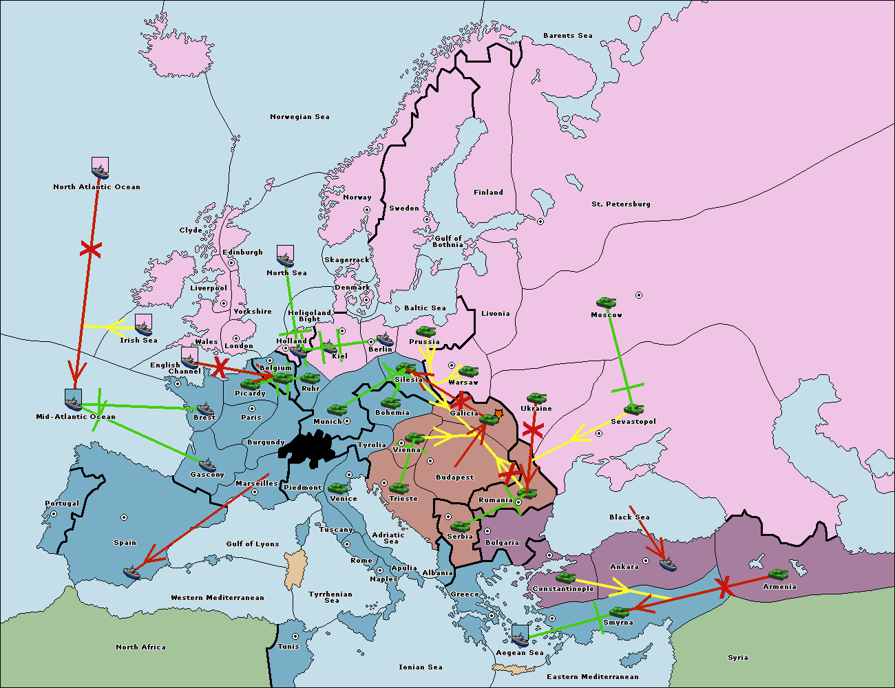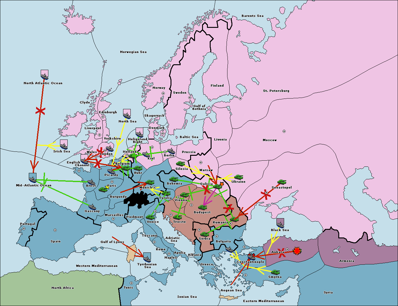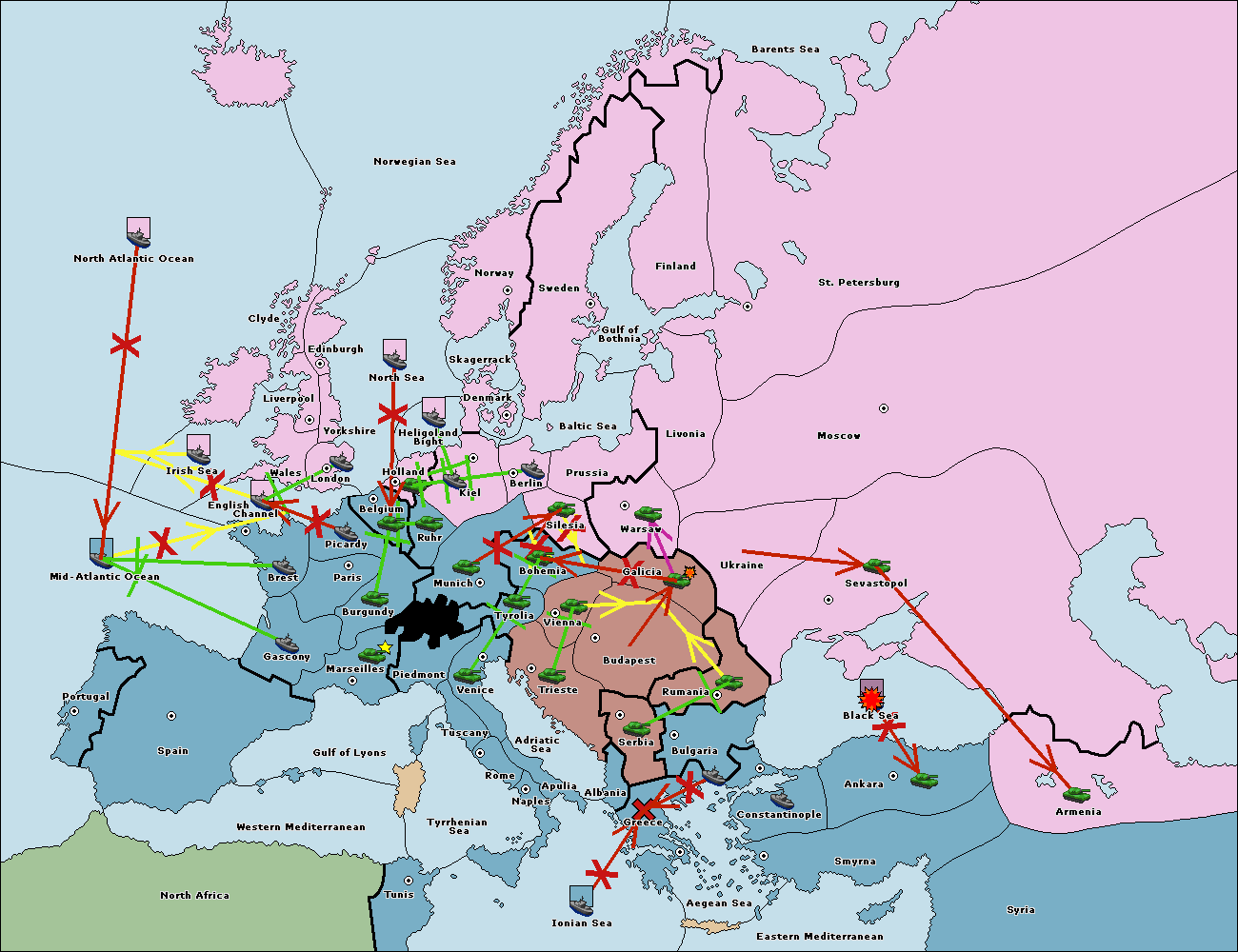 The fleet at Bulgaria (South Coast) move to Constantinople.