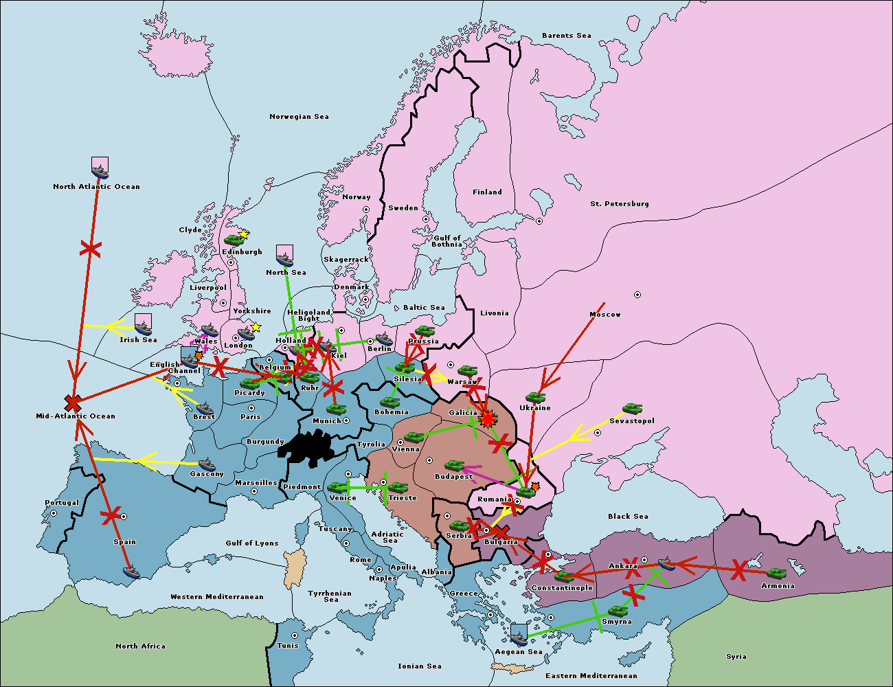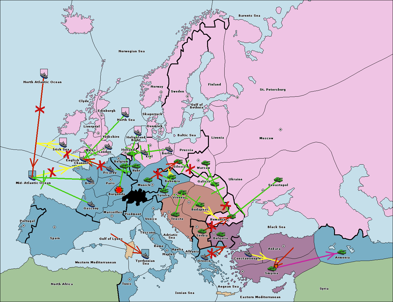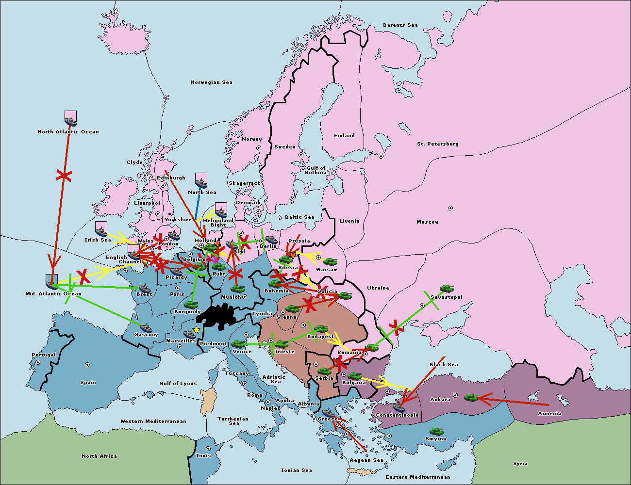 The fleet at Bulgaria (South Coast) move to Constantinople.