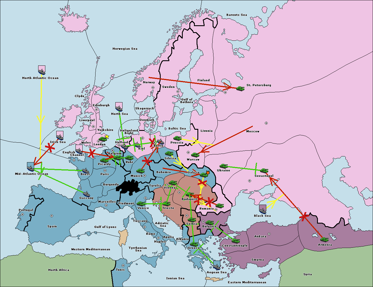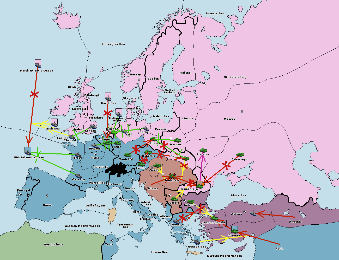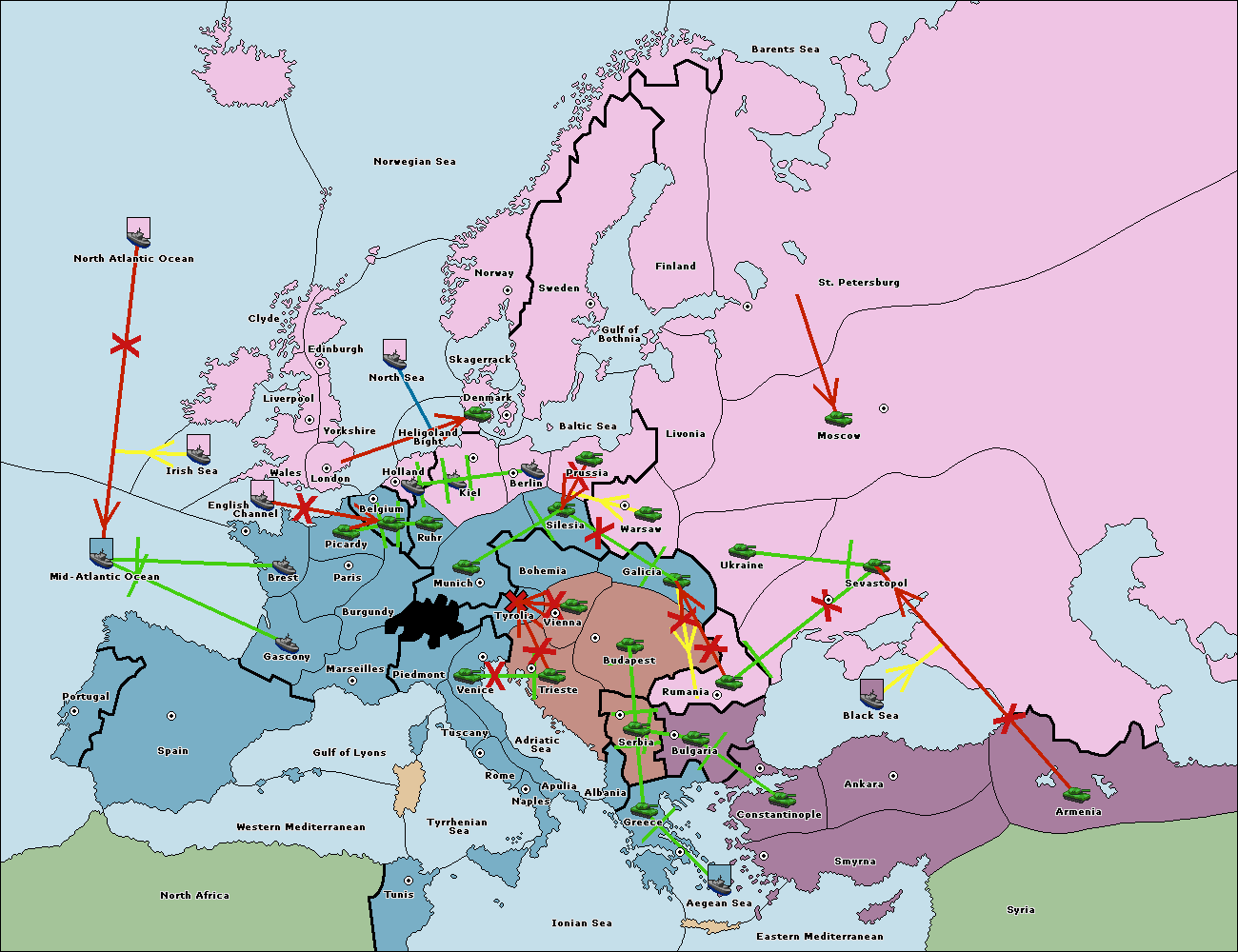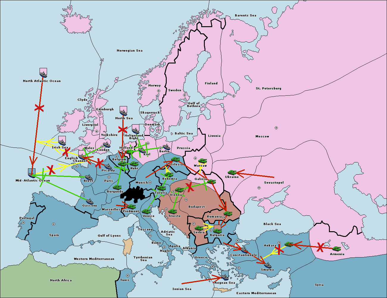 The fleet at Bulgaria (South Coast) move to Constantinople.