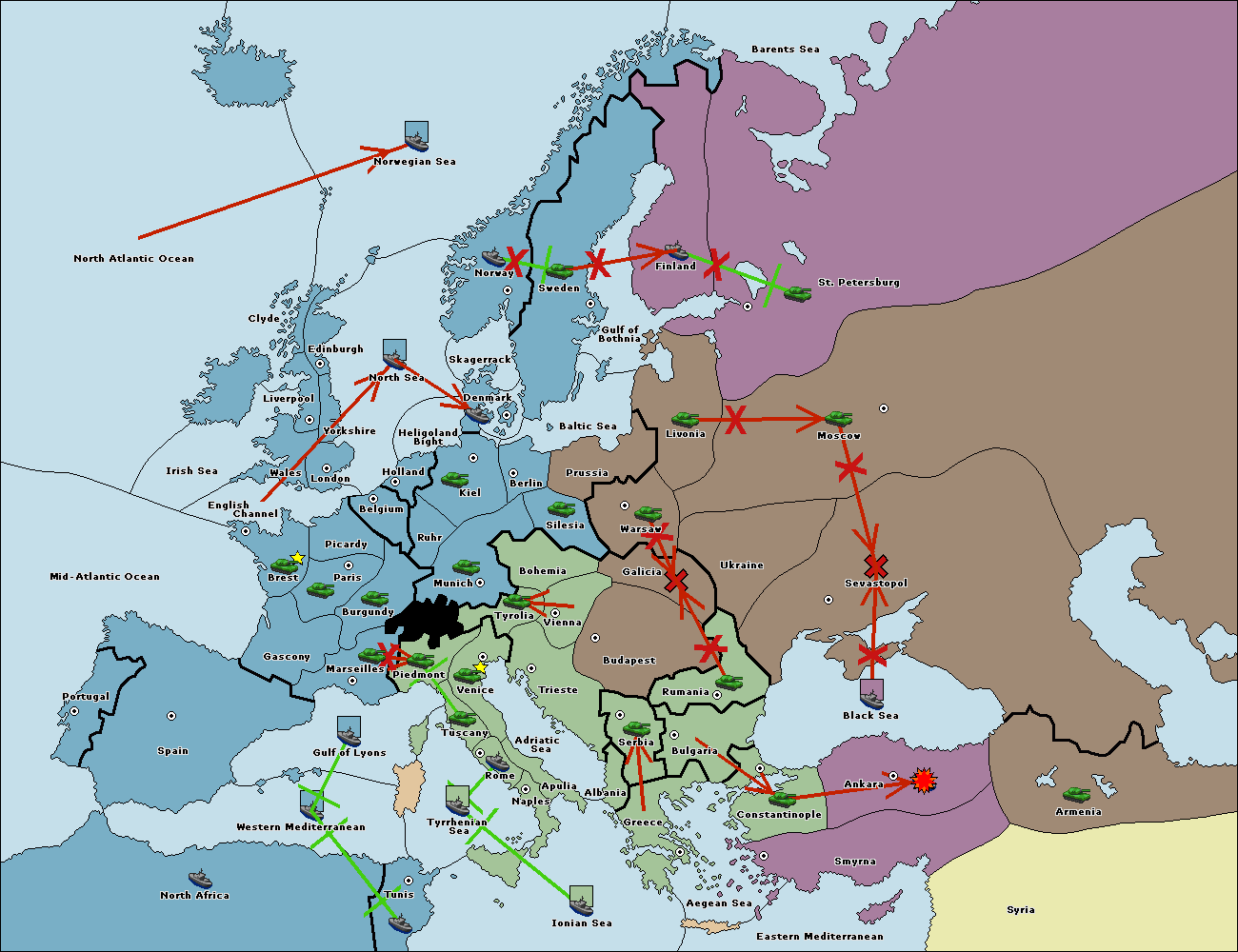На сервере установлен новый вариант 1900. Вариация классического варианта с исторически более достоверной картой, интересными спецправилами и еще большим взаимодействием между всеми семью державами. Приятной игры! - Flame.