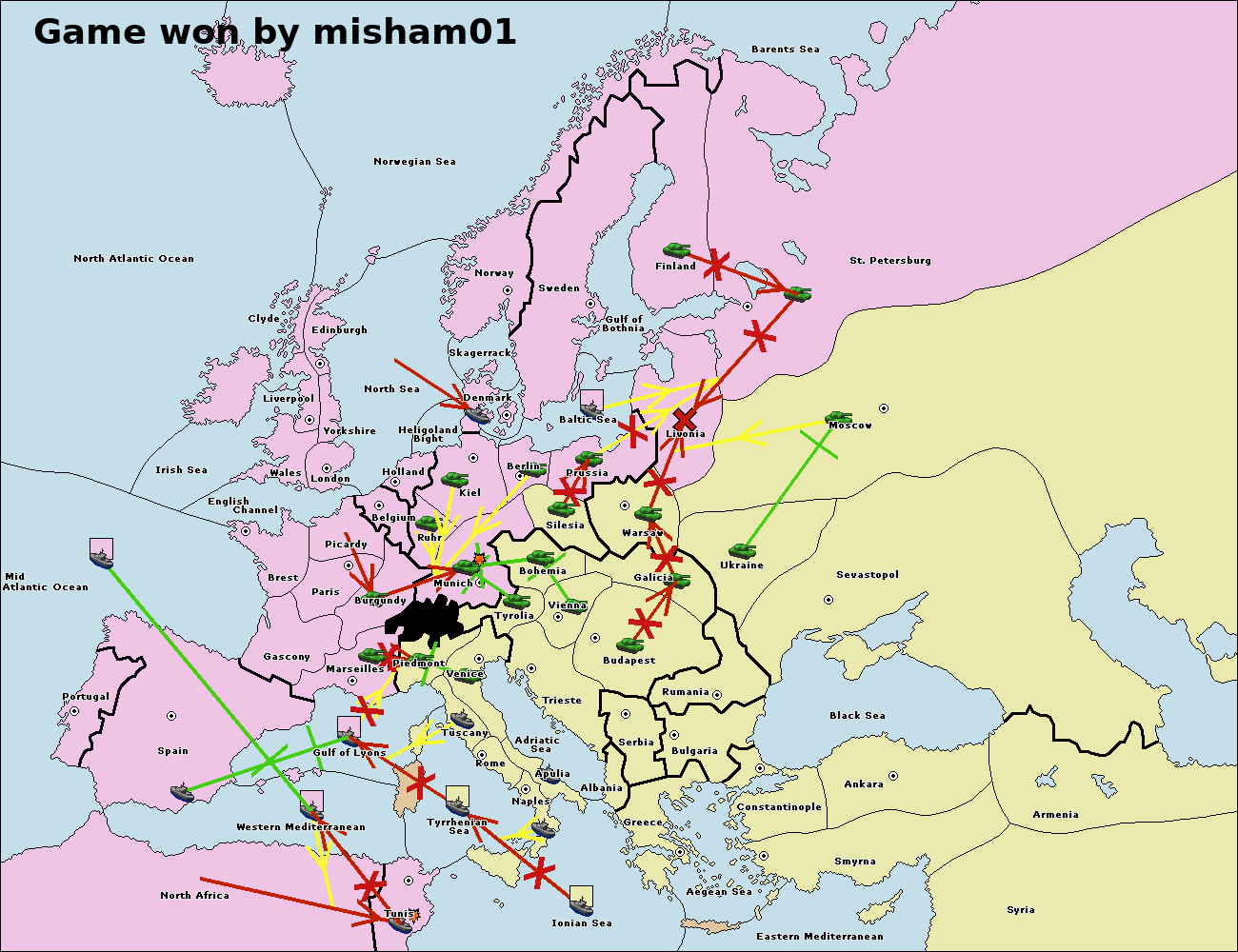 Неудачные приказы обычно отображаются только на большой карте ().