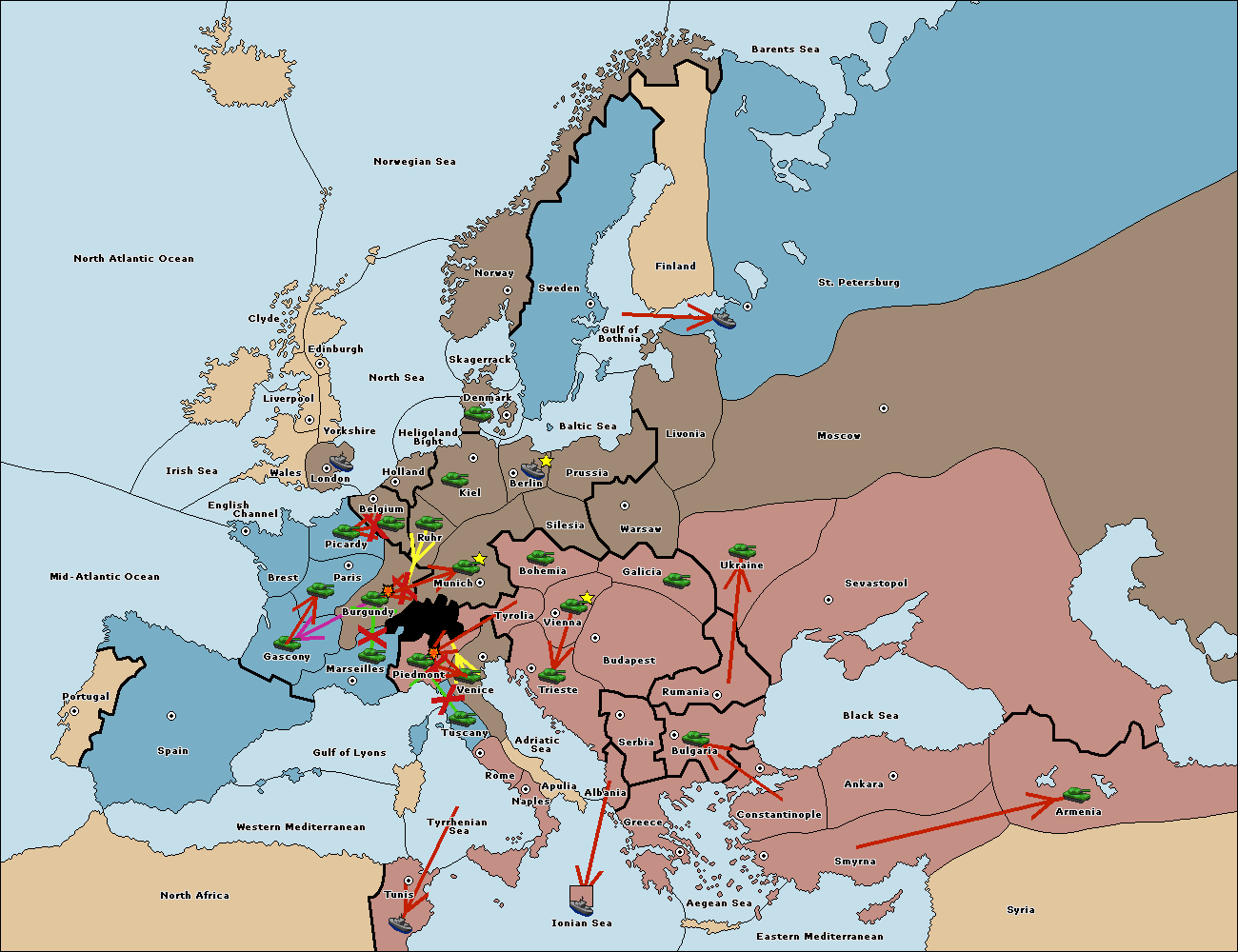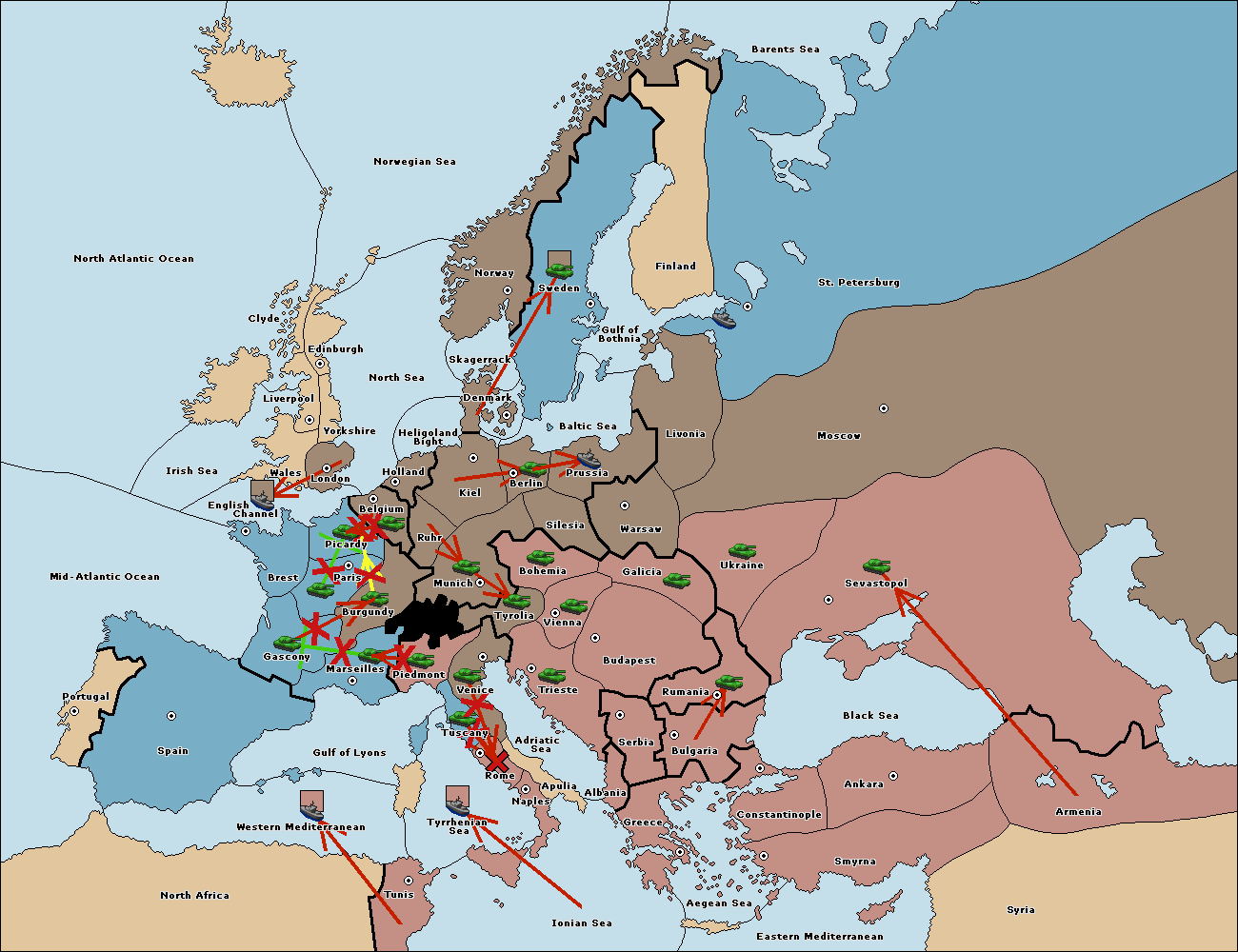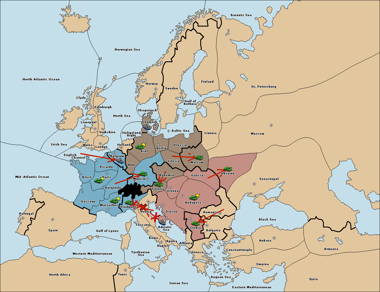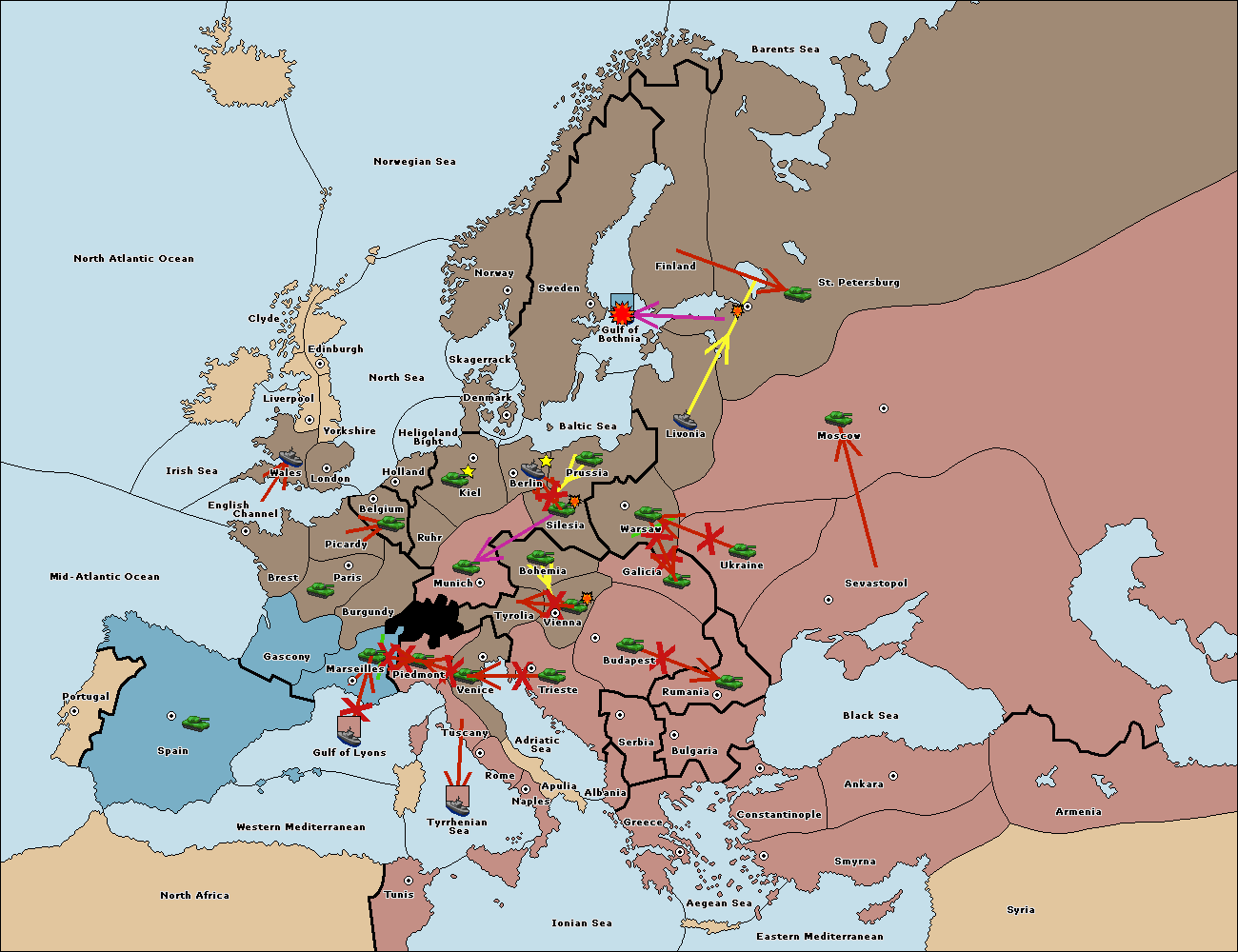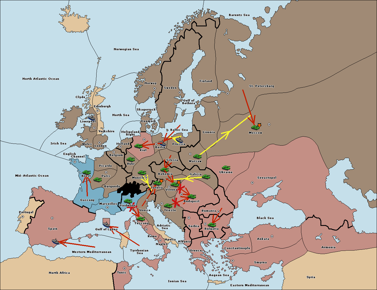 The fleet at Prussia support move to Berlin from Baltic Sea.