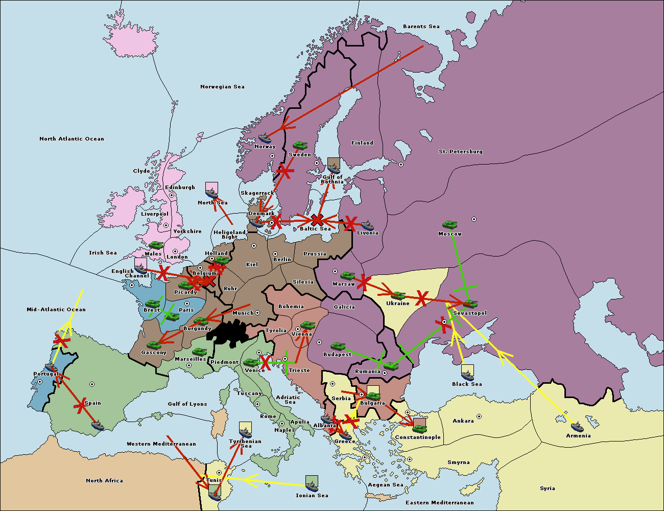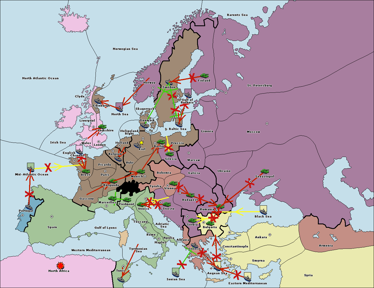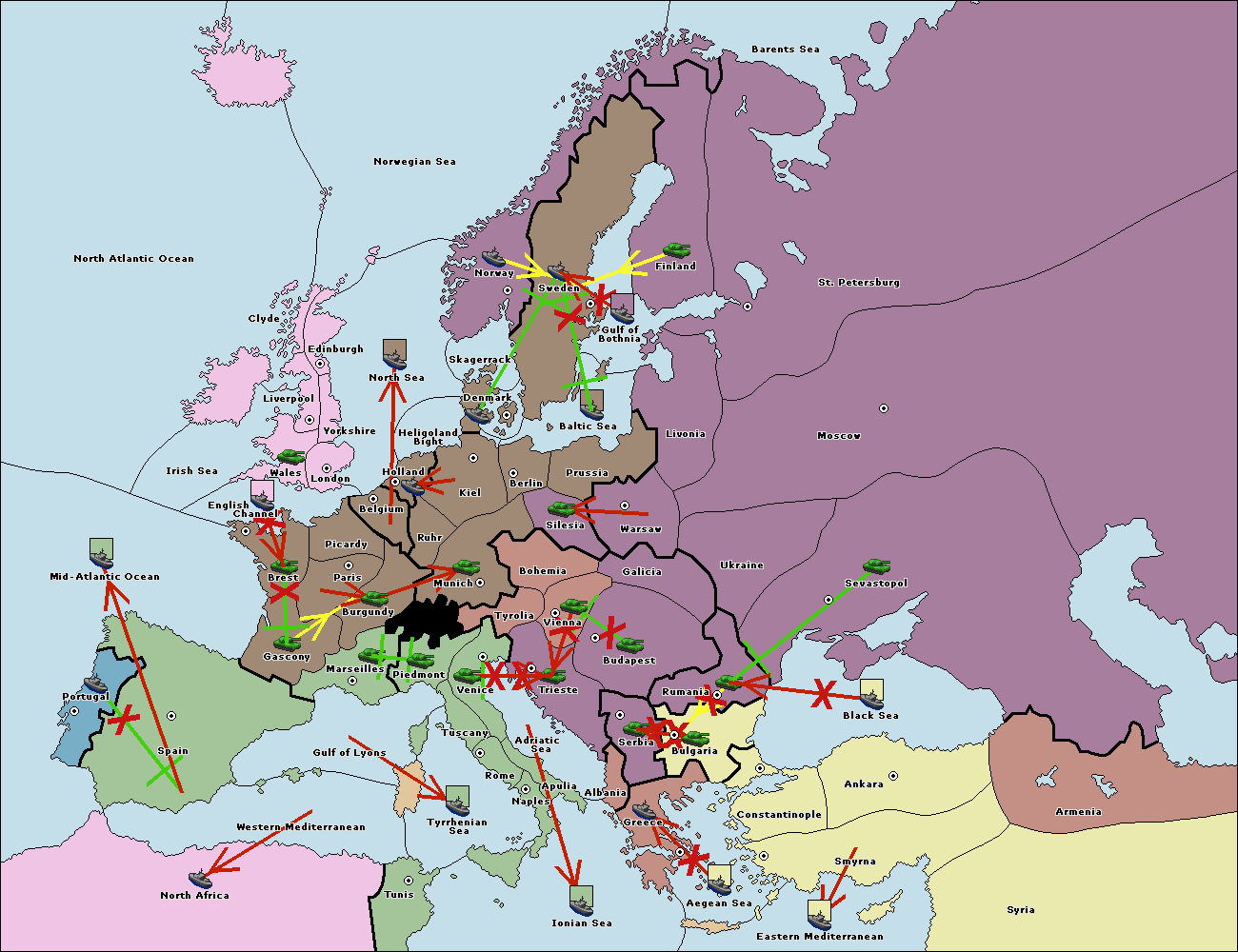 The fleet at Ionian Sea support move to Tunis from Western Mediterranean.