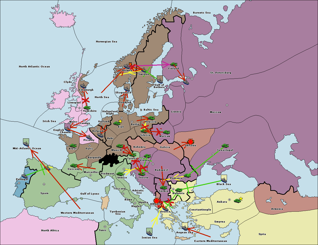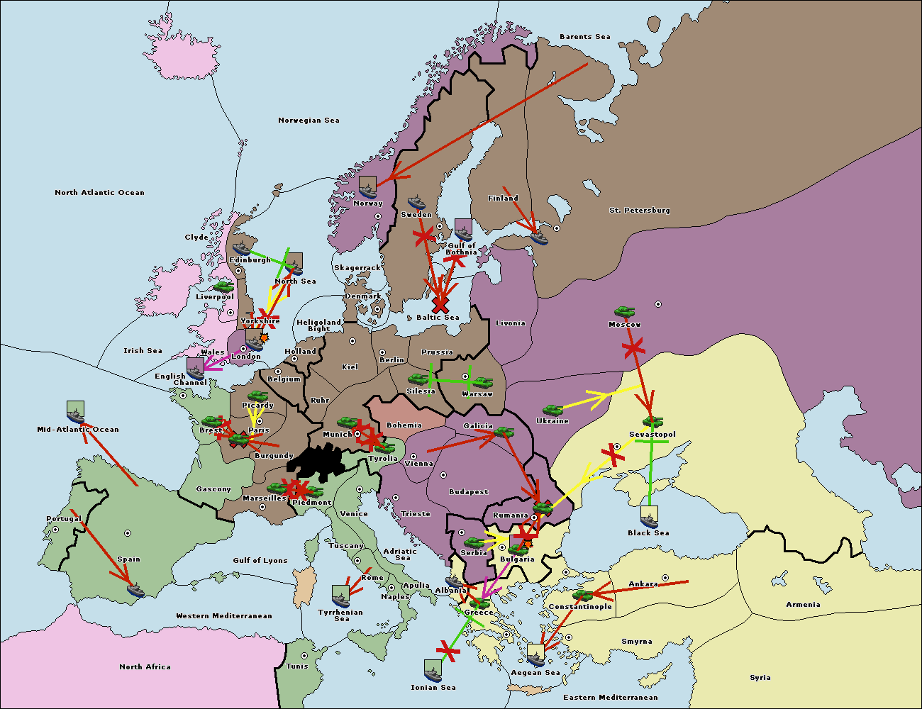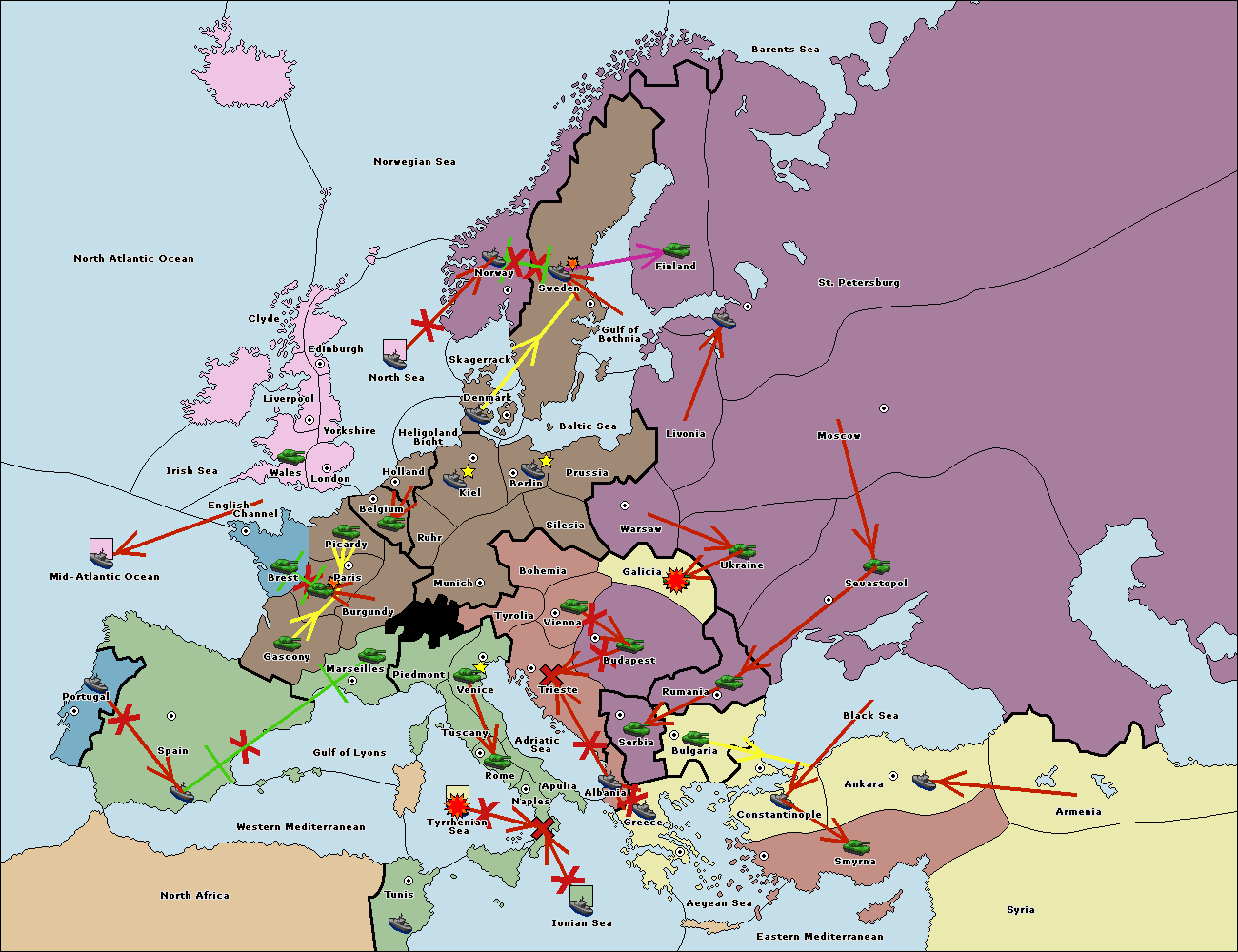 The fleet at Ionian Sea support move to Tunis from Western Mediterranean.
