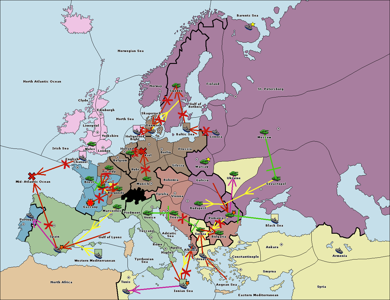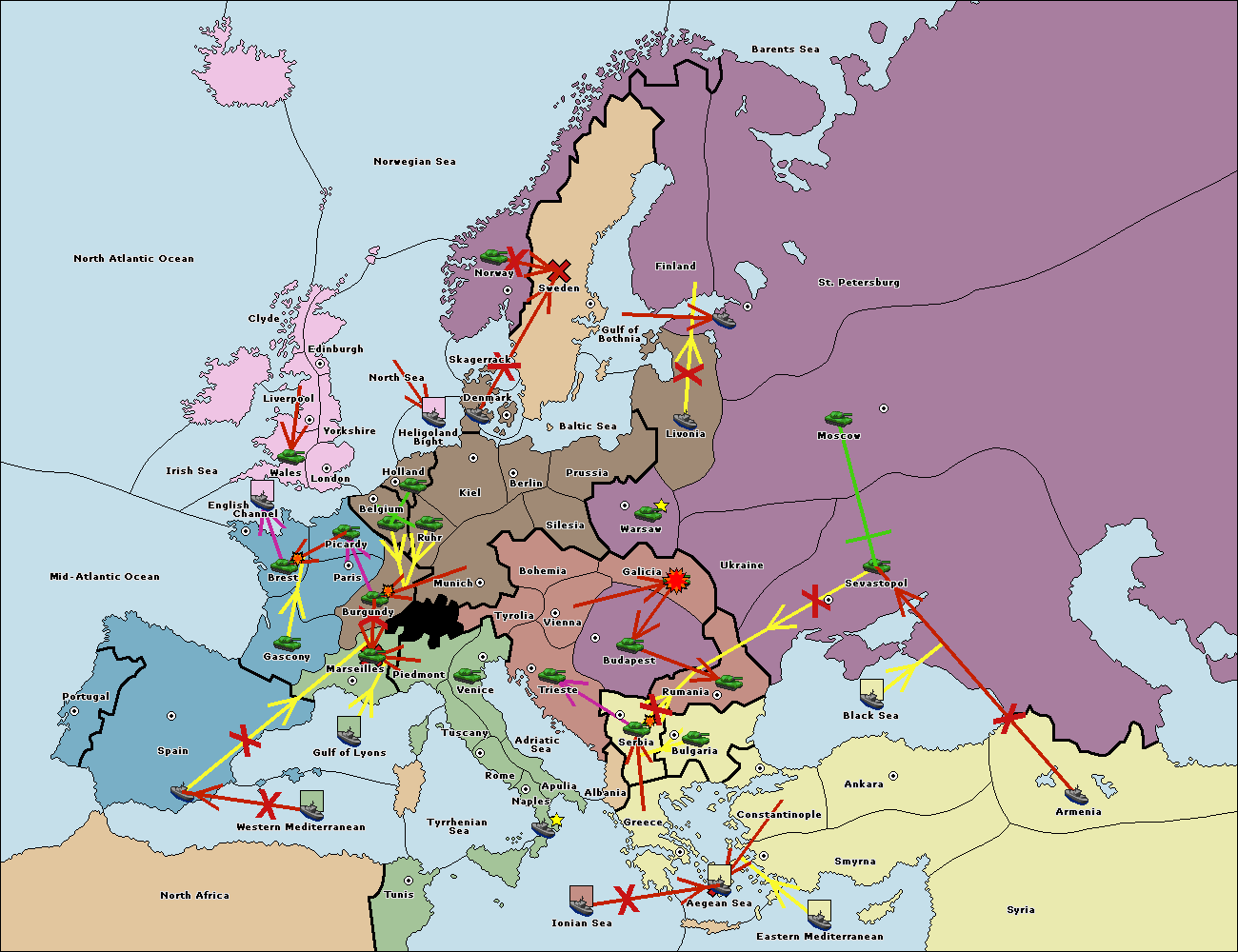 The fleet at Spain (South Coast) support move to Marseilles from Burgundy.