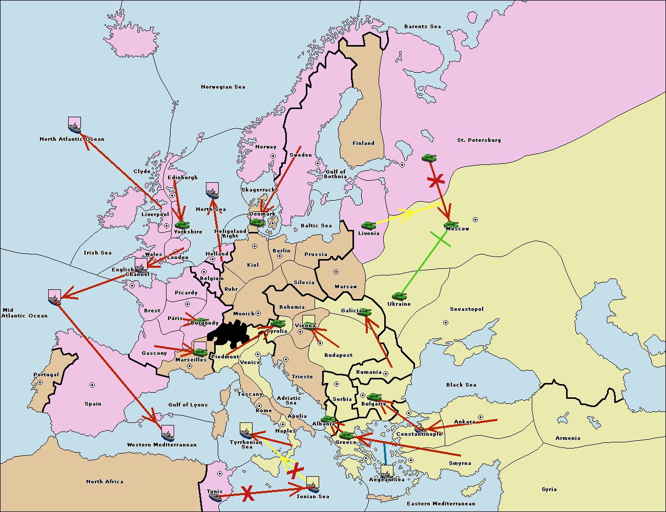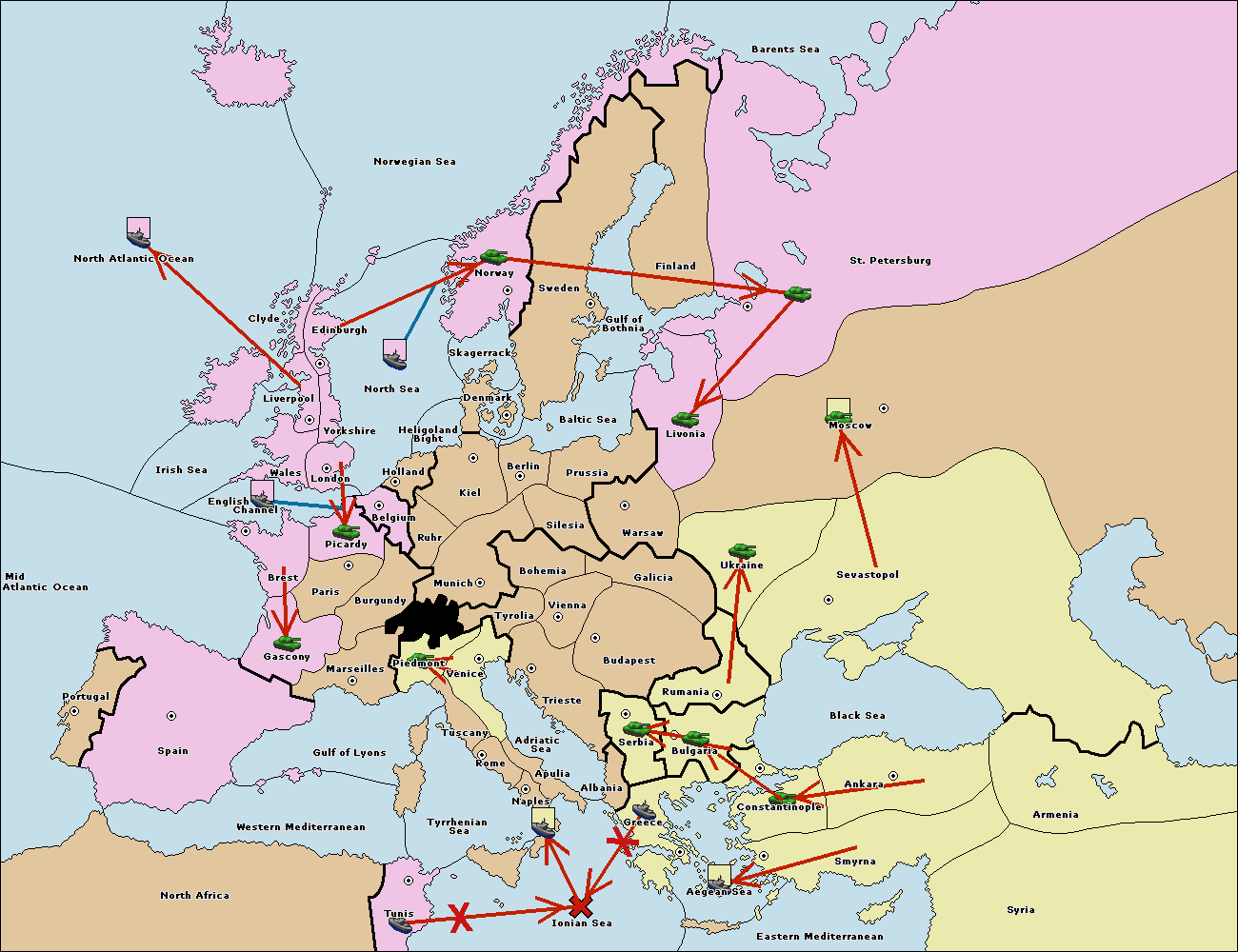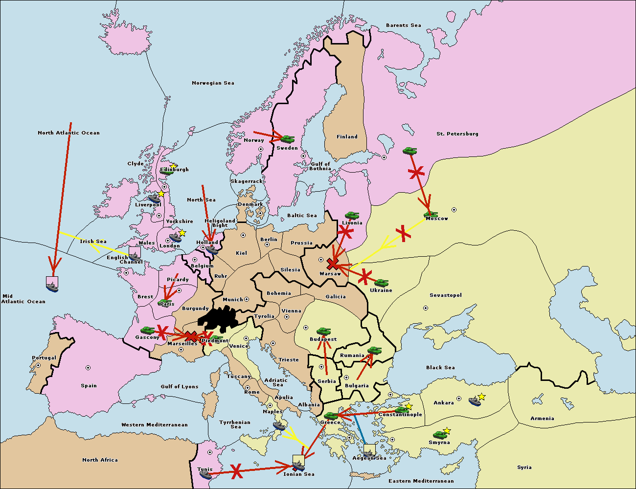 The fleet at Mid-Atlantic Ocean move to Western Mediterranean.