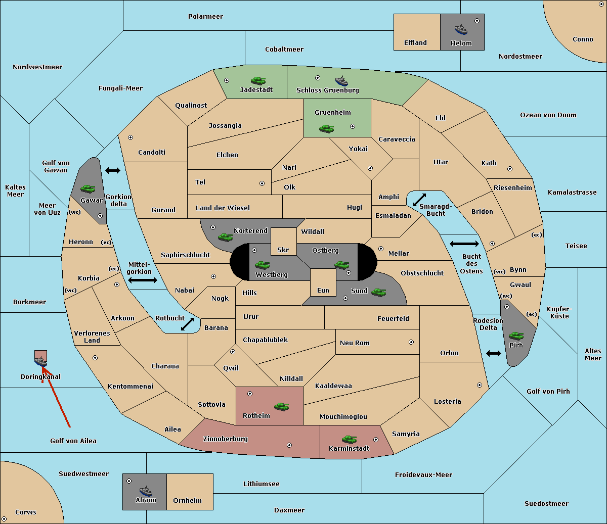 The fleet at Zinnoberburg move to Golf von Ailea.