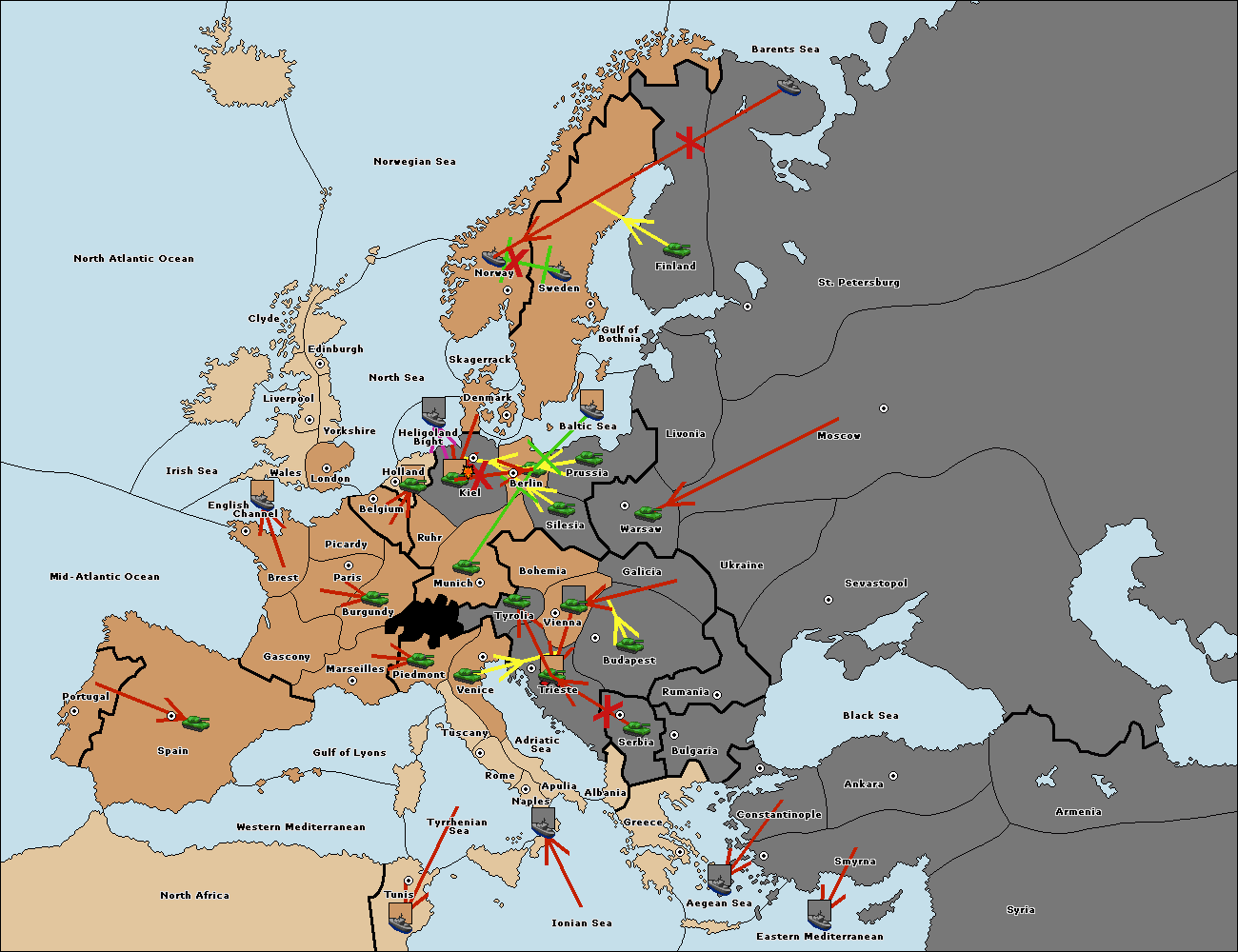 The fleet at Sweden support hold to Norway.