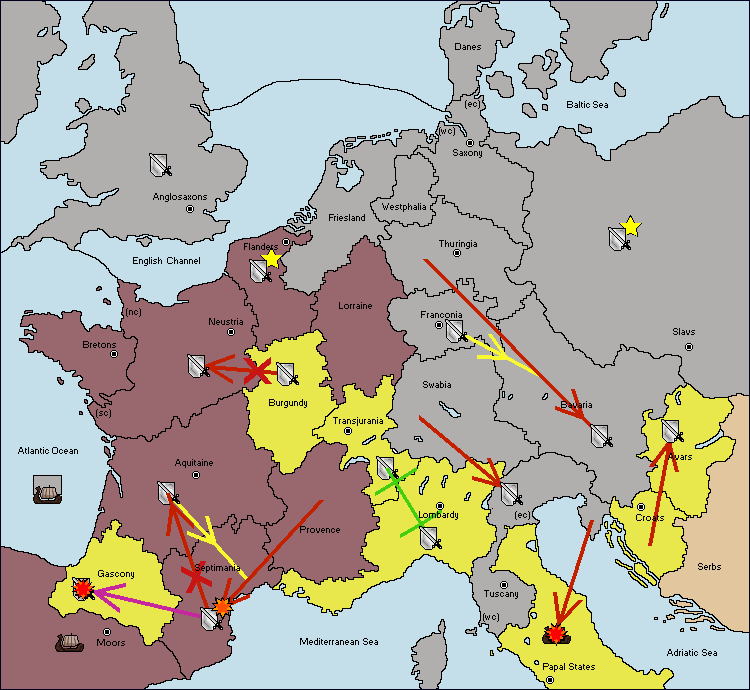 The army at Septimania move to Gascony.