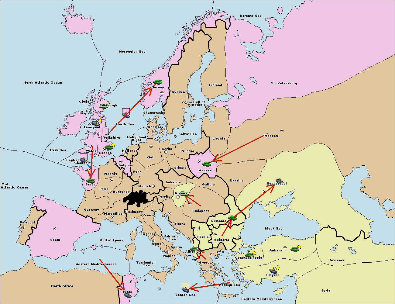 The fleet at Mid-Atlantic Ocean move to Western Mediterranean.