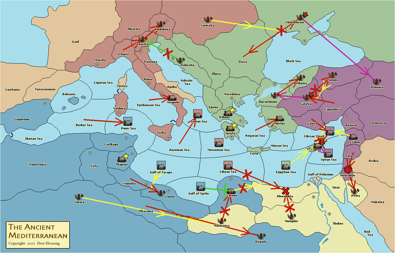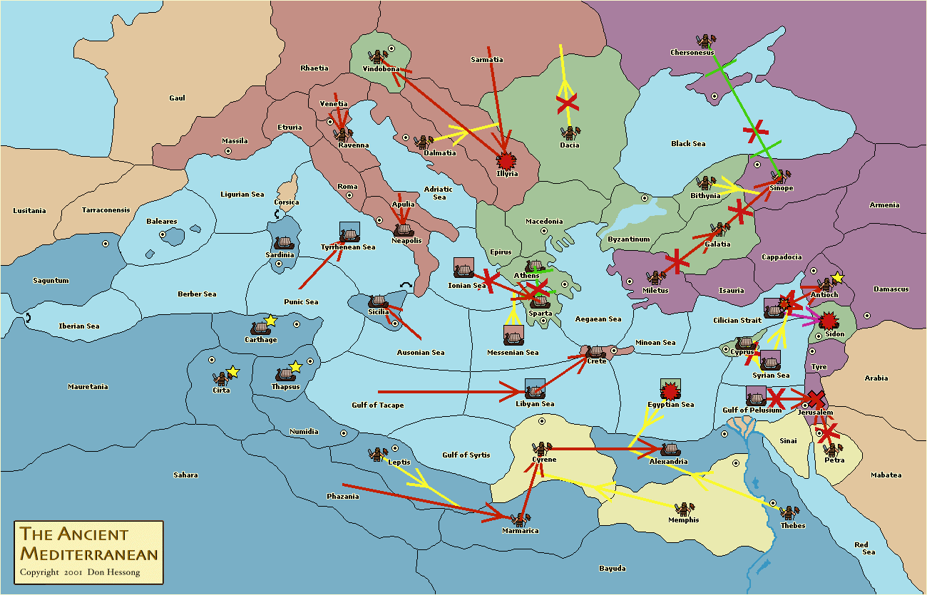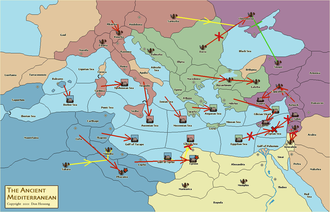 The fleet at Egyptian Sea support move to Cyprus from Cilician Strait.