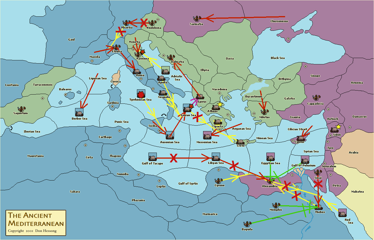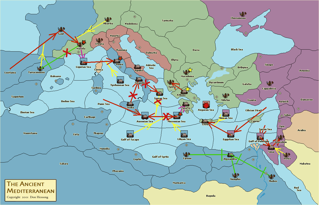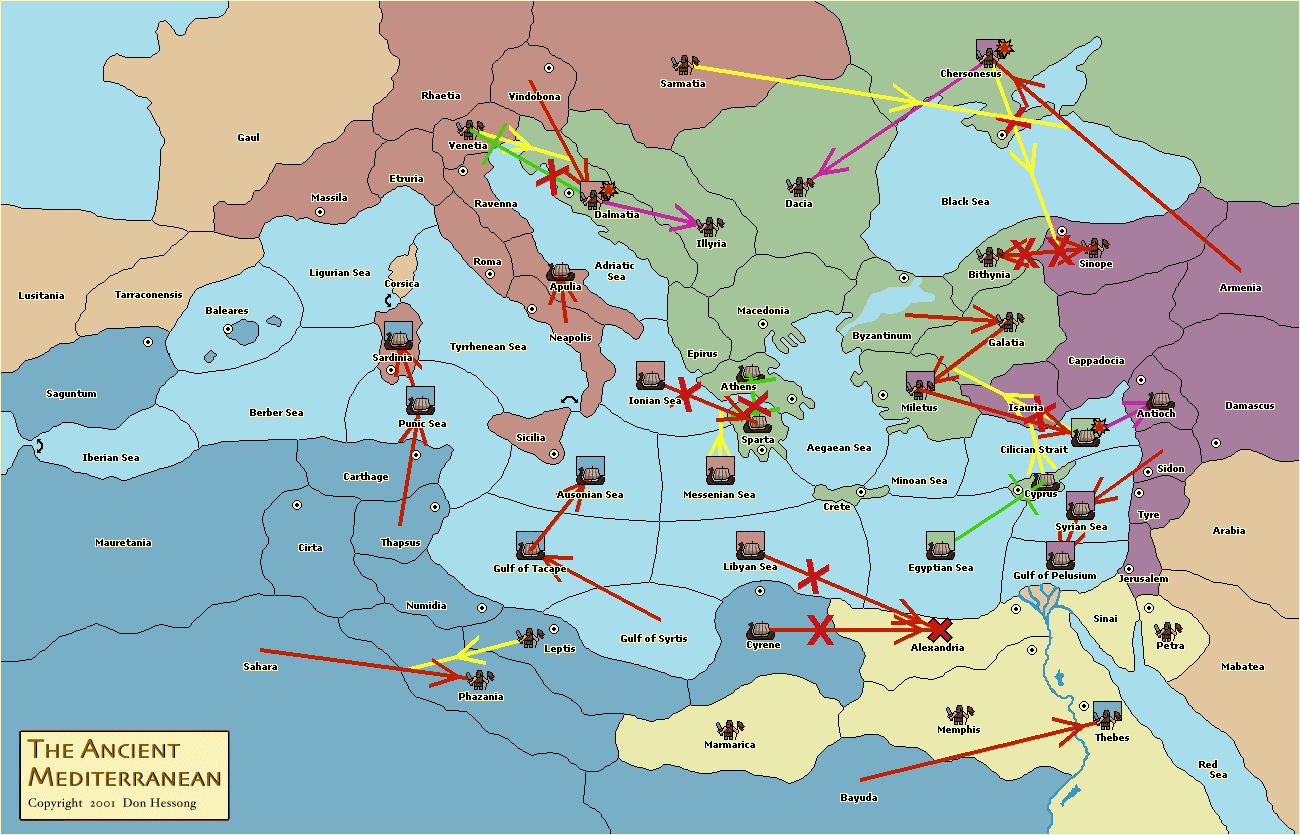 The fleet at Egyptian Sea support move to Cyprus from Cilician Strait.