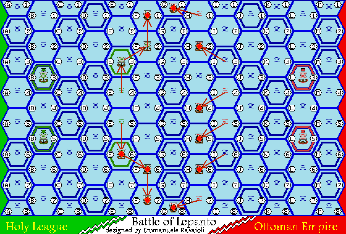 7 October 1571, 1 hour after the start of the battle Large map: