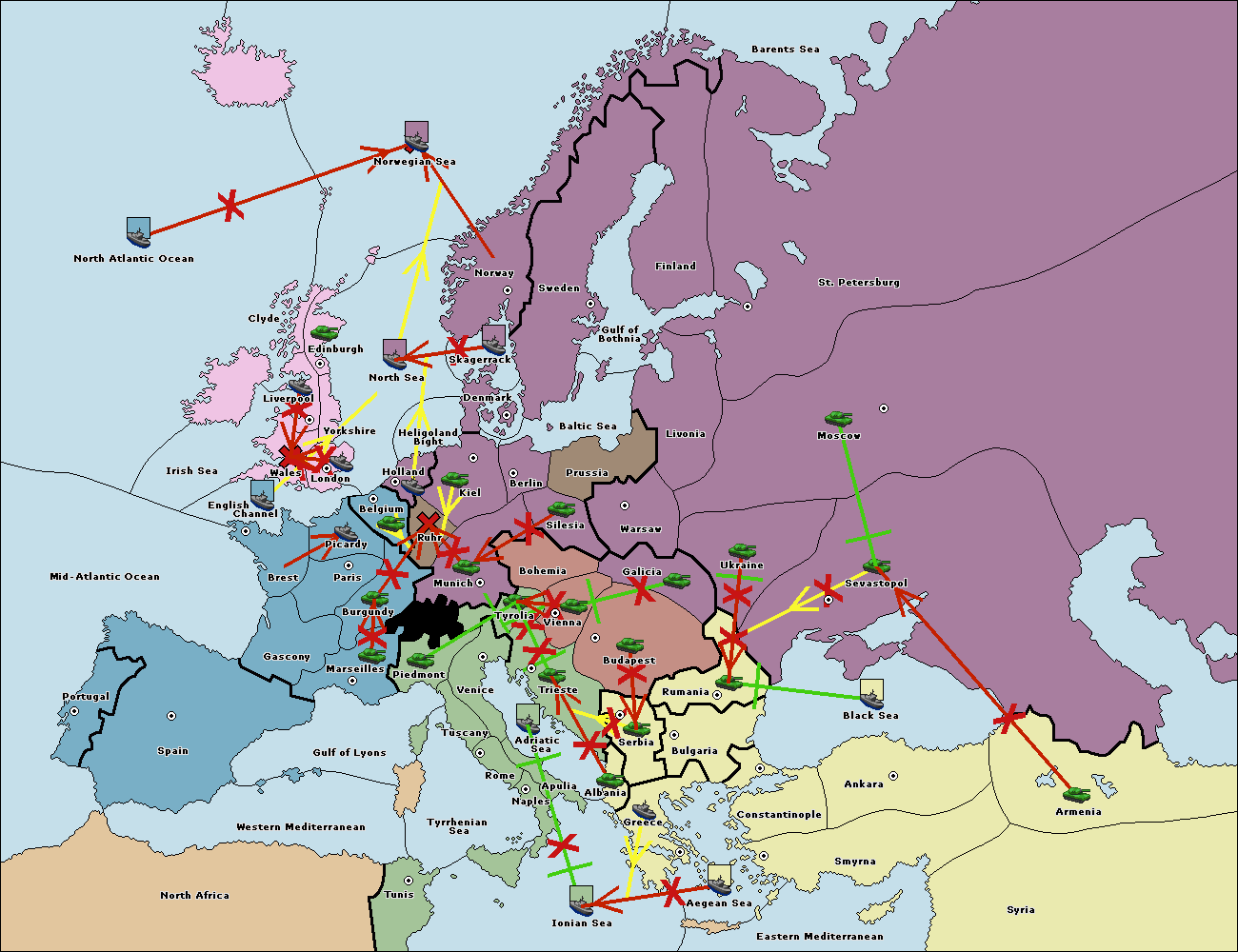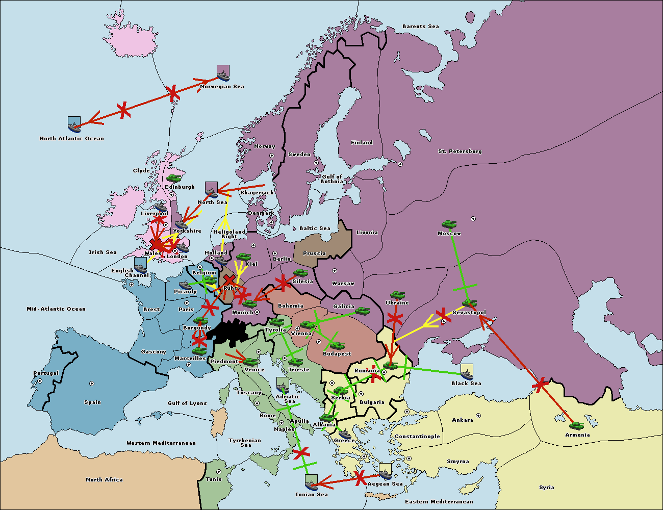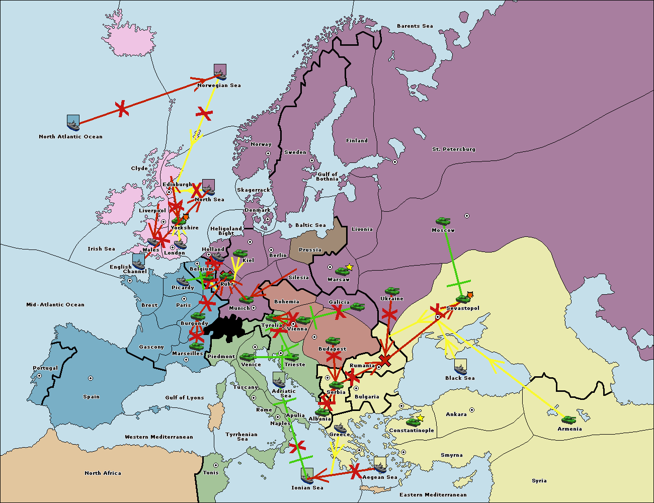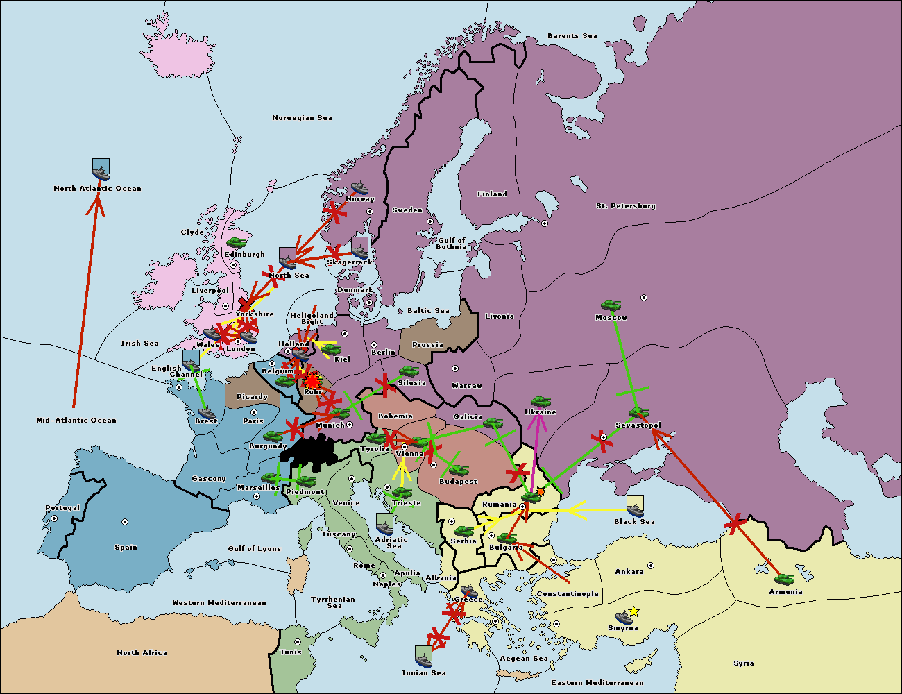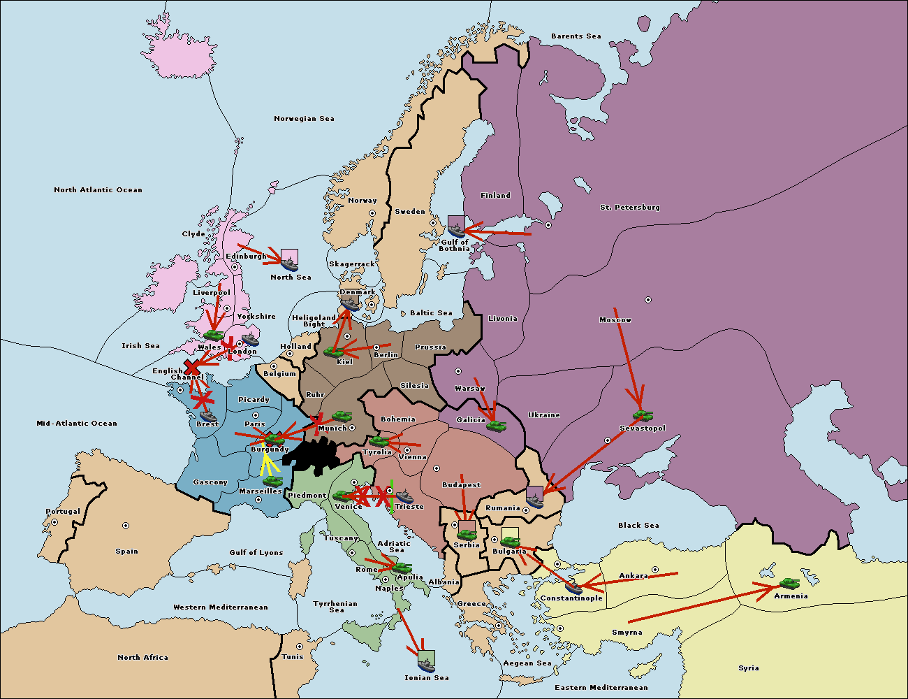 The fleet at Bulgaria (North Coast) support hold to Constantinople.