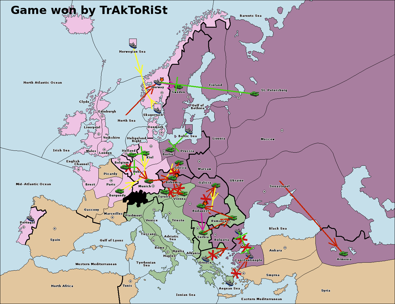 На сервере установлен новый вариант 1900. Вариация классического варианта с исторически более достоверной картой и большим взаимодействием между всеми семью державами. Приятной игры! - Flame. |