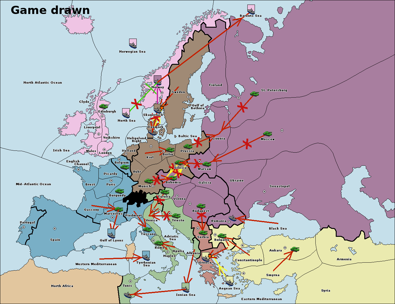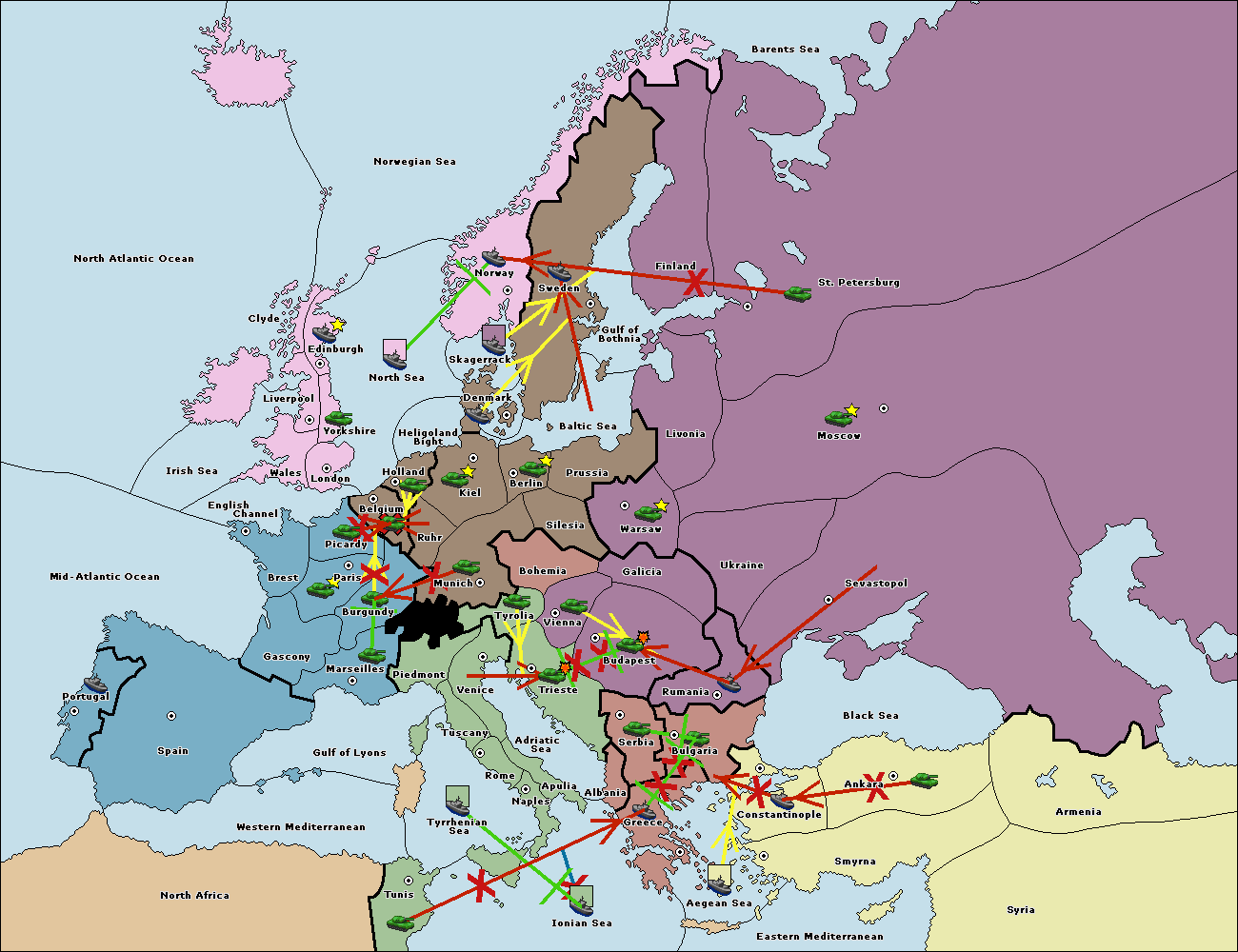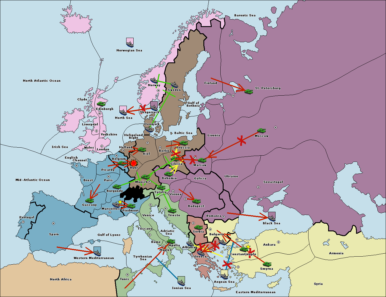 The fleet at Rumania support move to Bulgaria from Constantinople.
