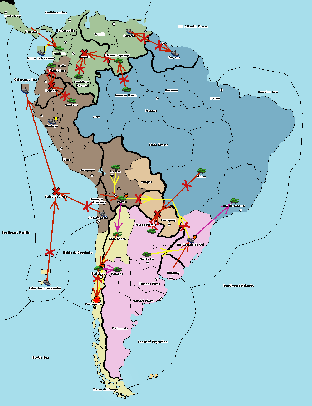 Build army at Rio de Janeiro.