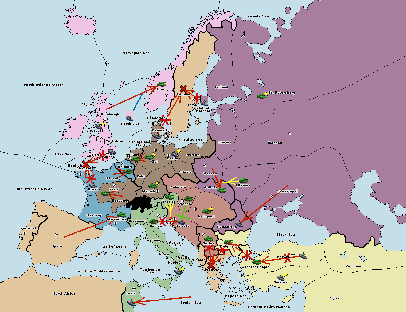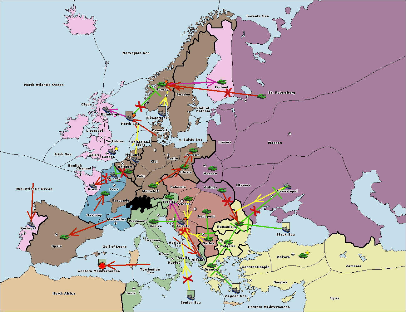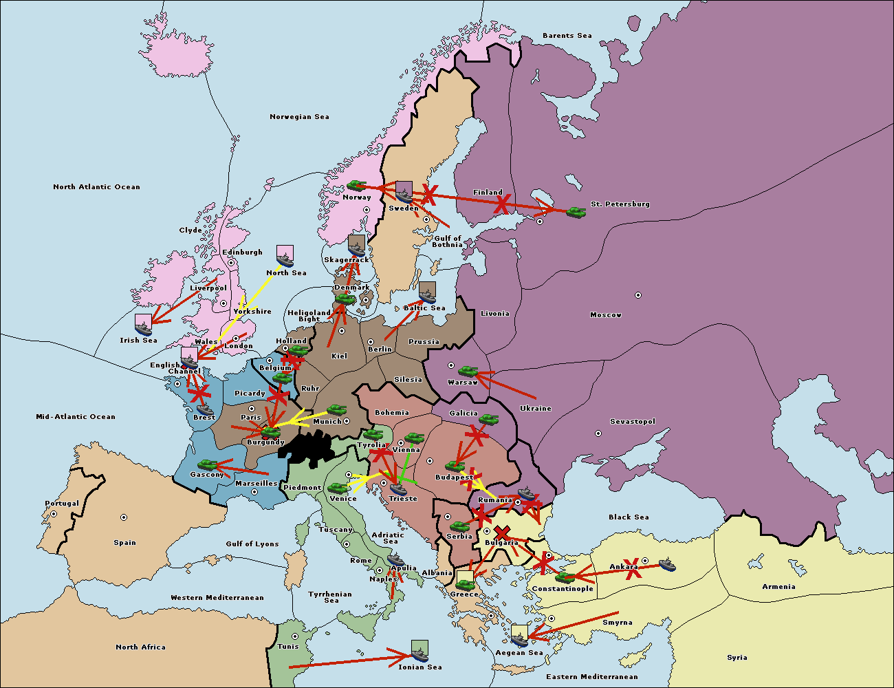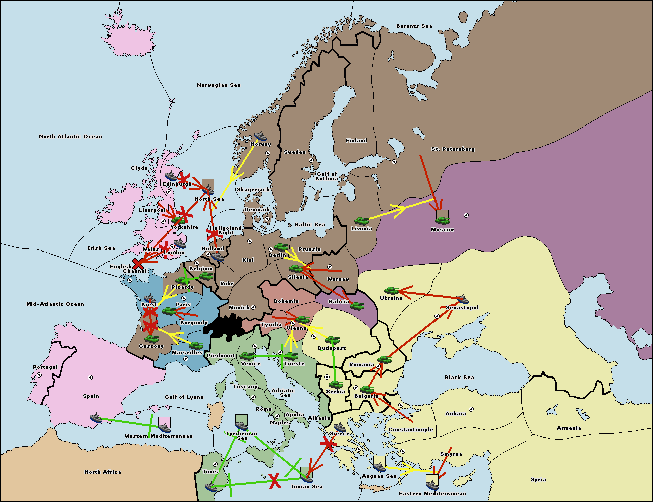 The fleet at Spain (South Coast) support move to Marseilles from Gulf of Lyons.