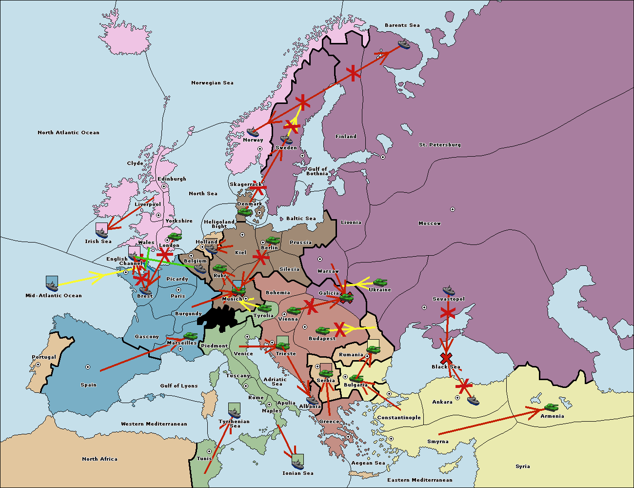 The fleet at North Africa move to Mid-Atlantic Ocean.