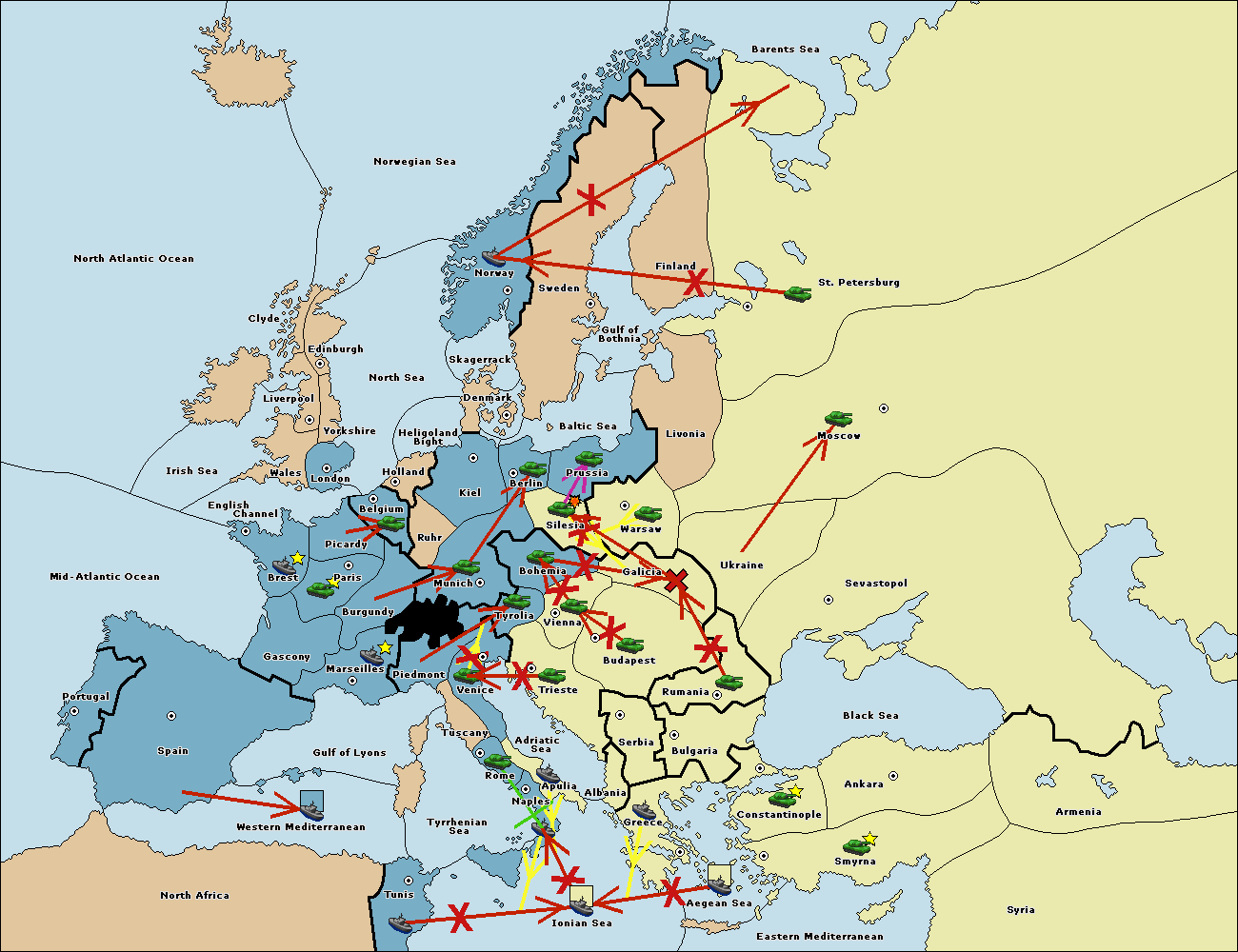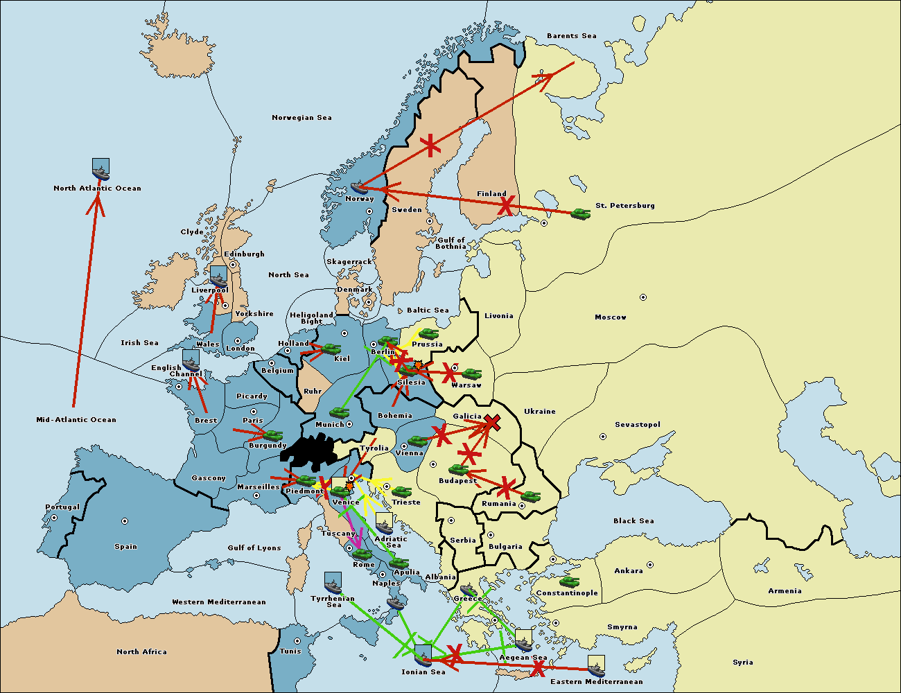 На сервере установлен новый вариант 1900. Вариация классического варианта с исторически более достоверной картой, интересными спецправилами и еще большим взаимодействием между всеми семью державами. Приятной игры! - Flame.