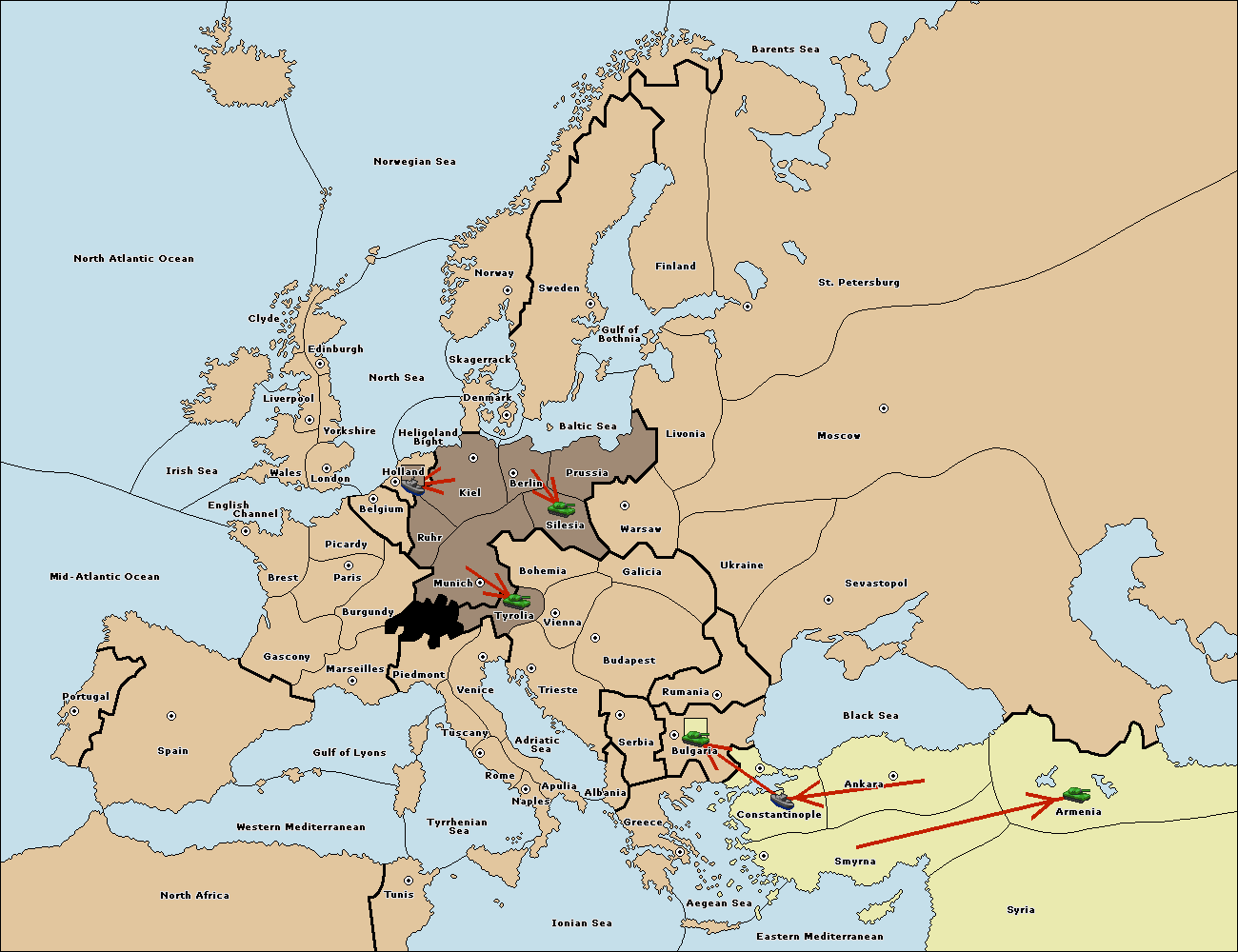 The fleet at Constantinople move to Bulgaria (South Coast).