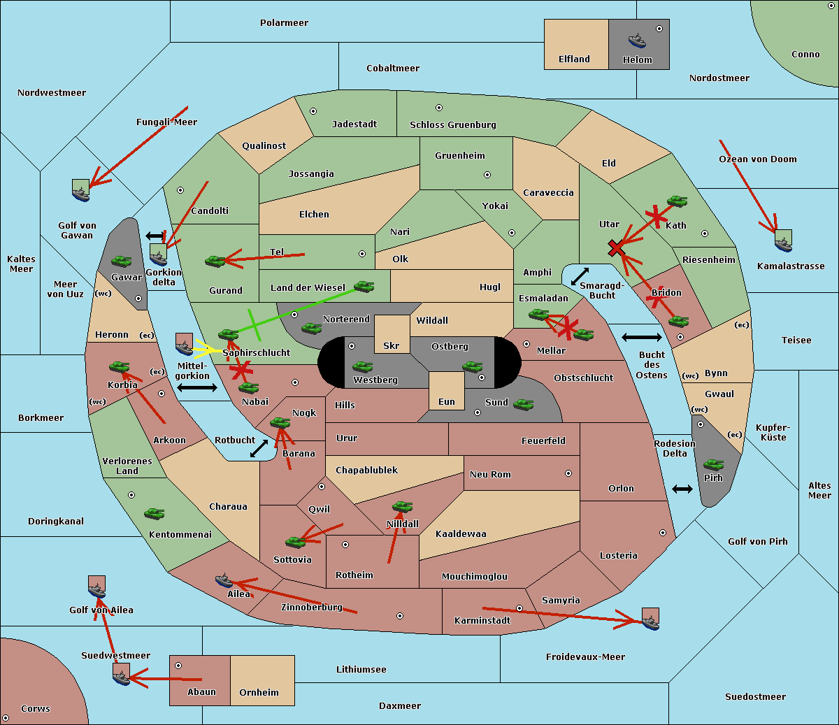 The fleet at Kaltes Meer move to Golf von Gawan.