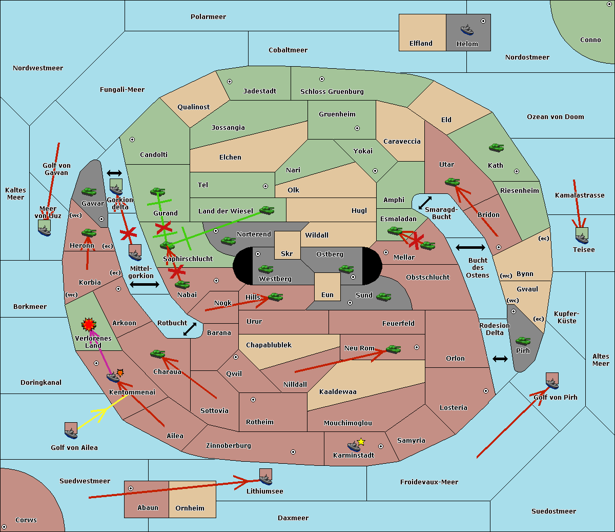 The fleet at Schloss Gruenburg move to Ozean von Doom.