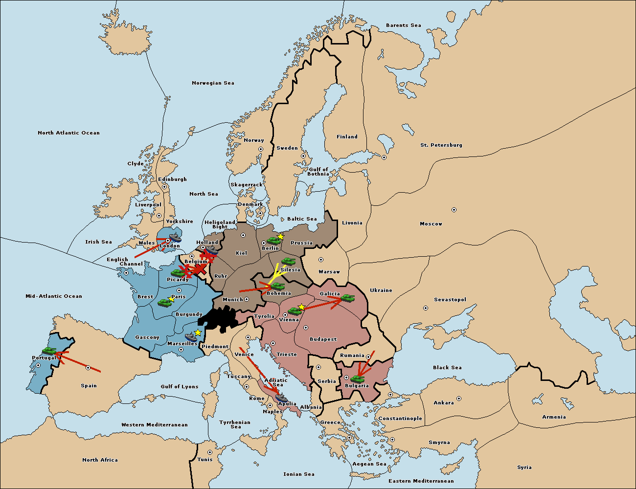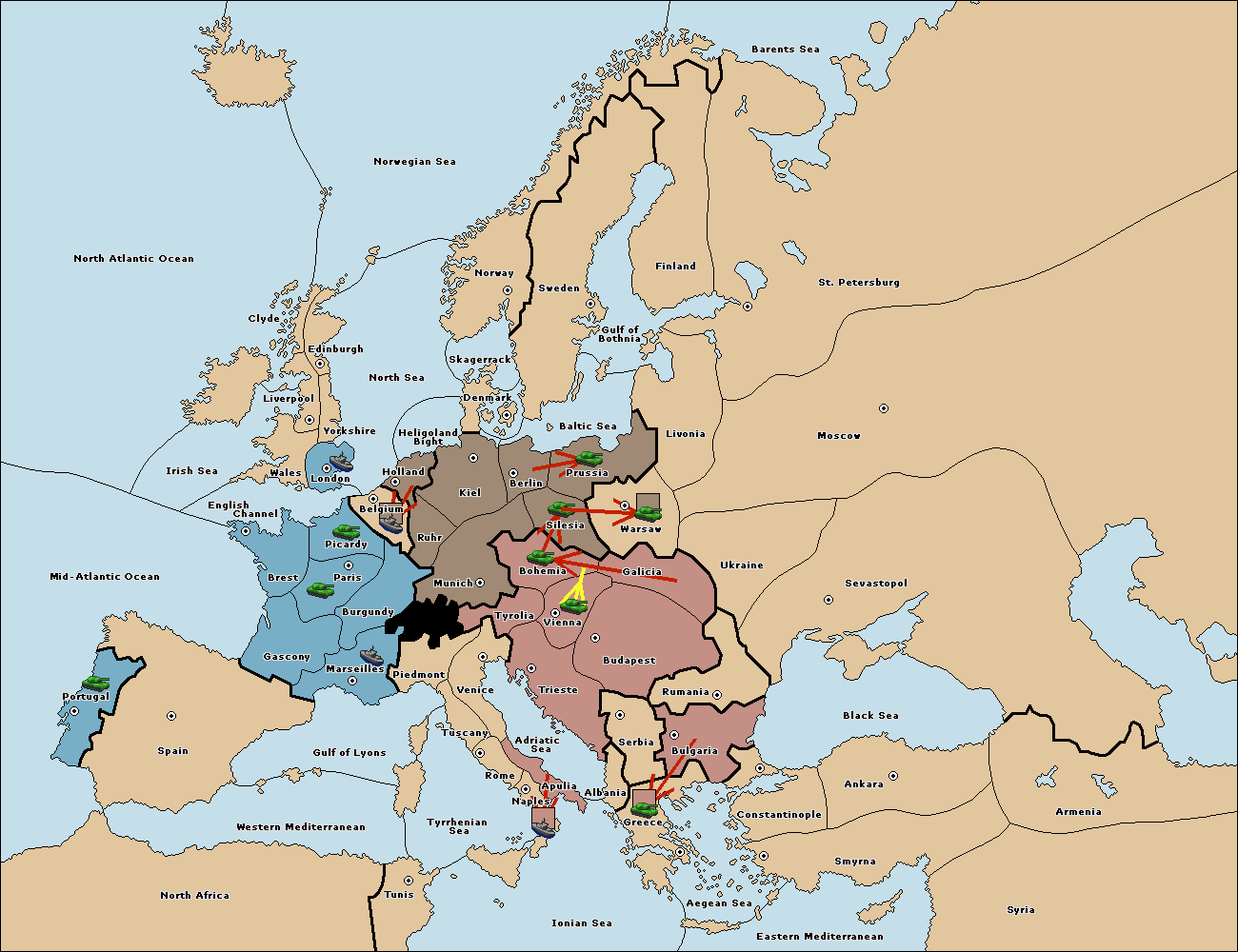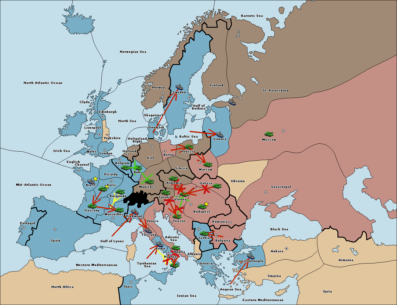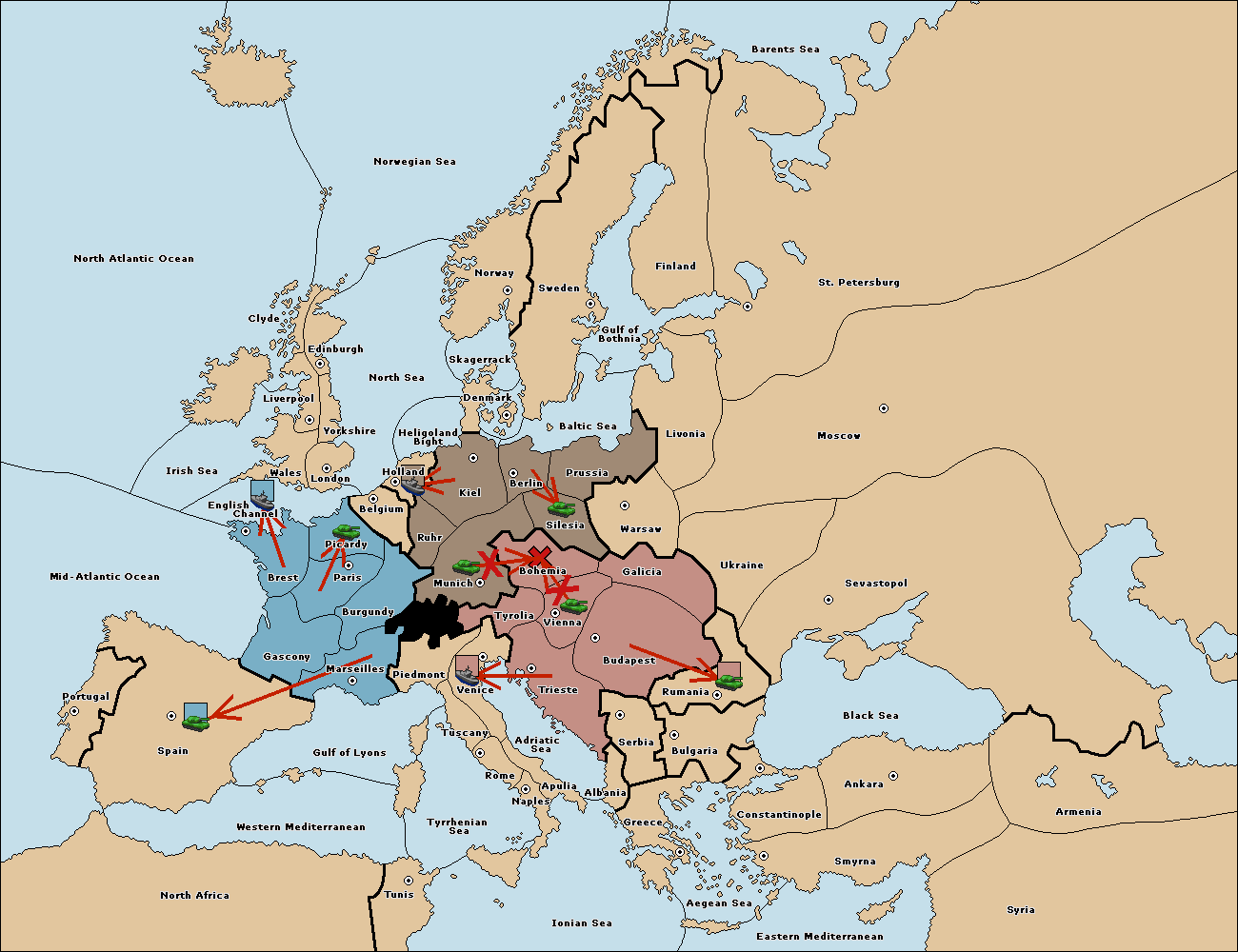 The army at Tyrolia support move to Vienna from Galicia.