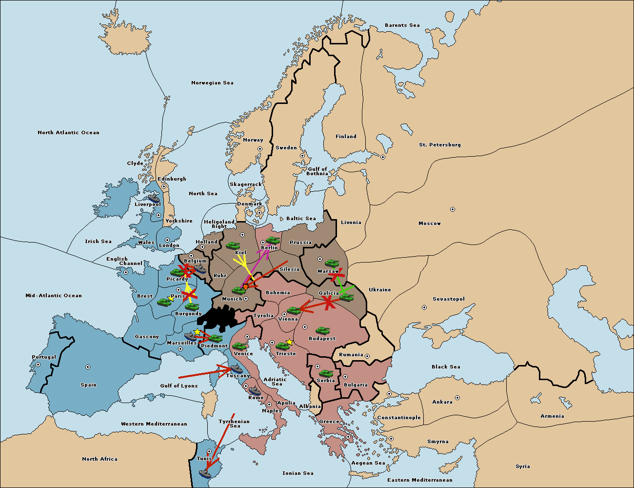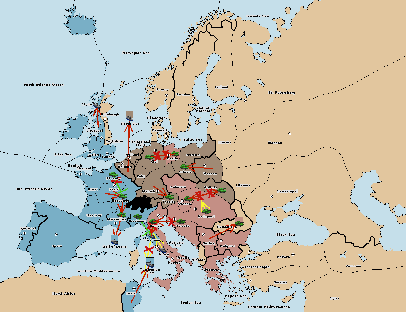 The fleet at Tuscany support move to Tyrrhenian Sea from Tunis.