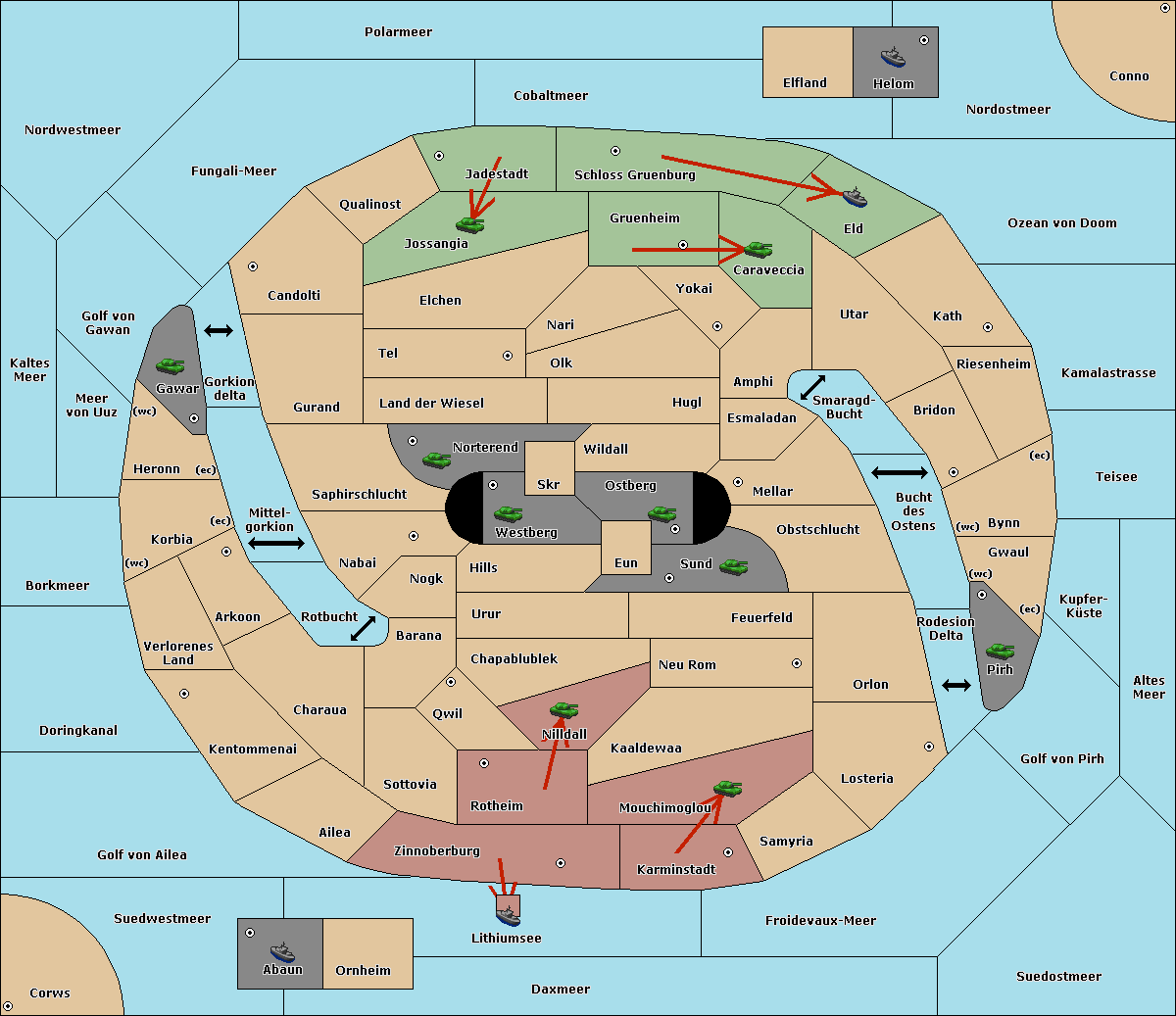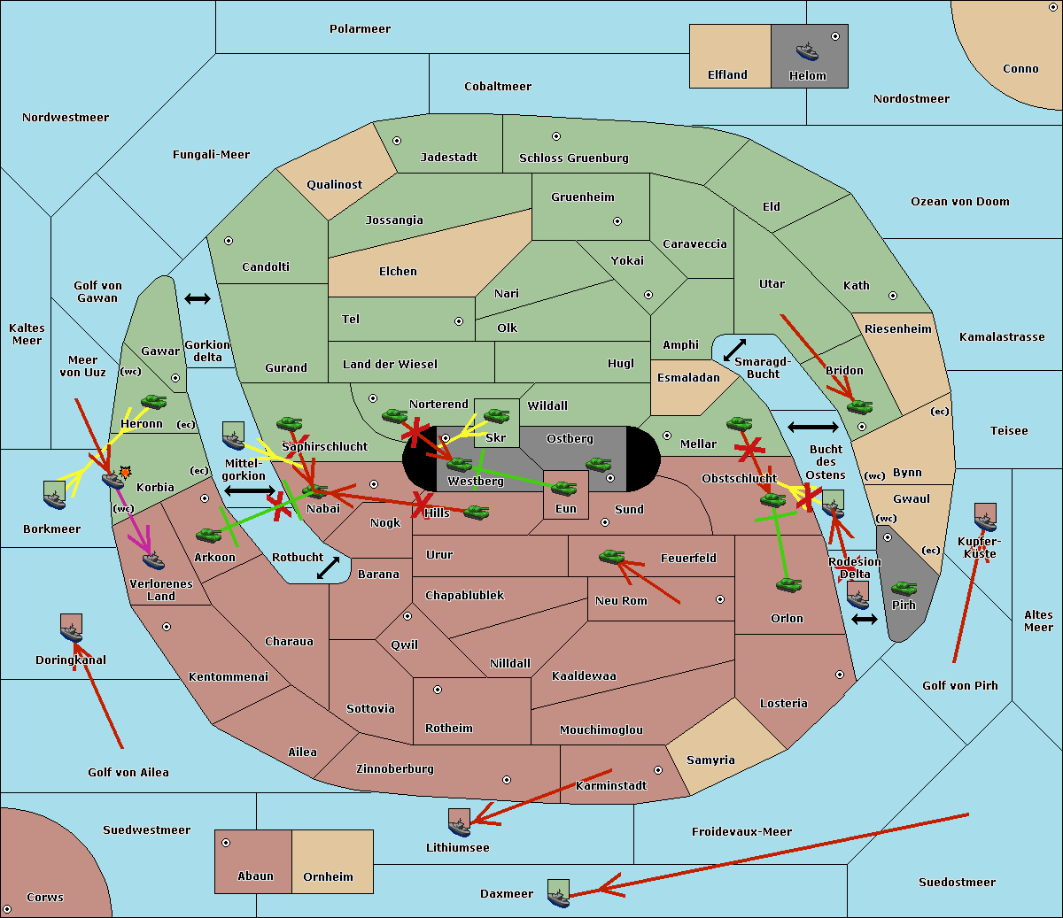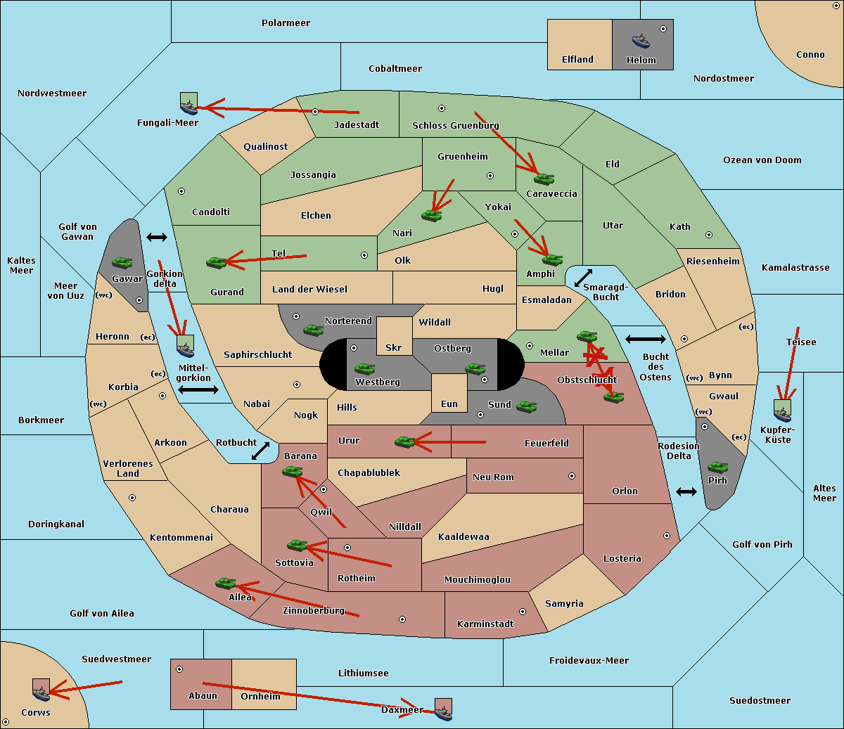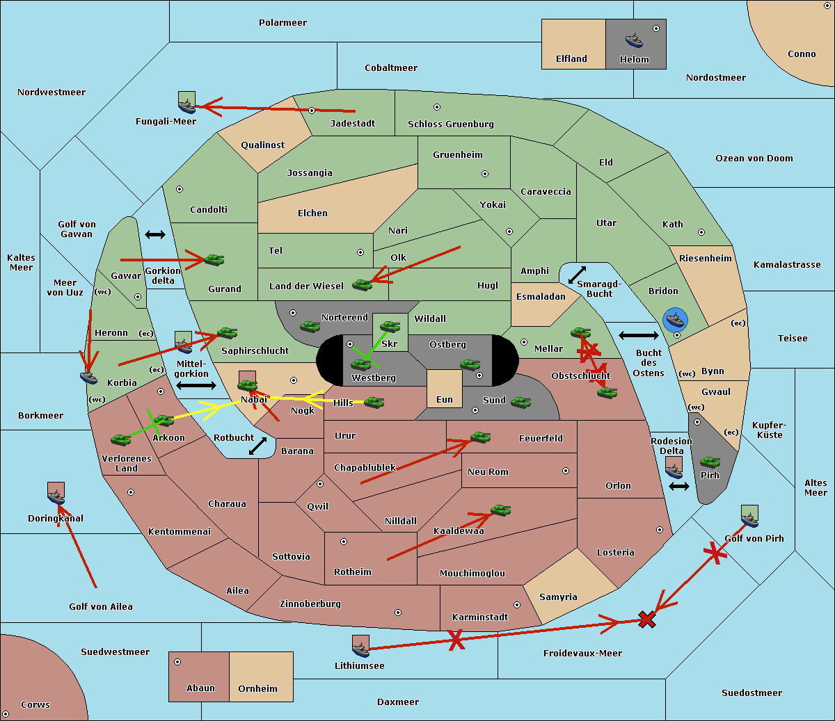 The fleet at Korbia (West Coast) move to Verlorenes Land.