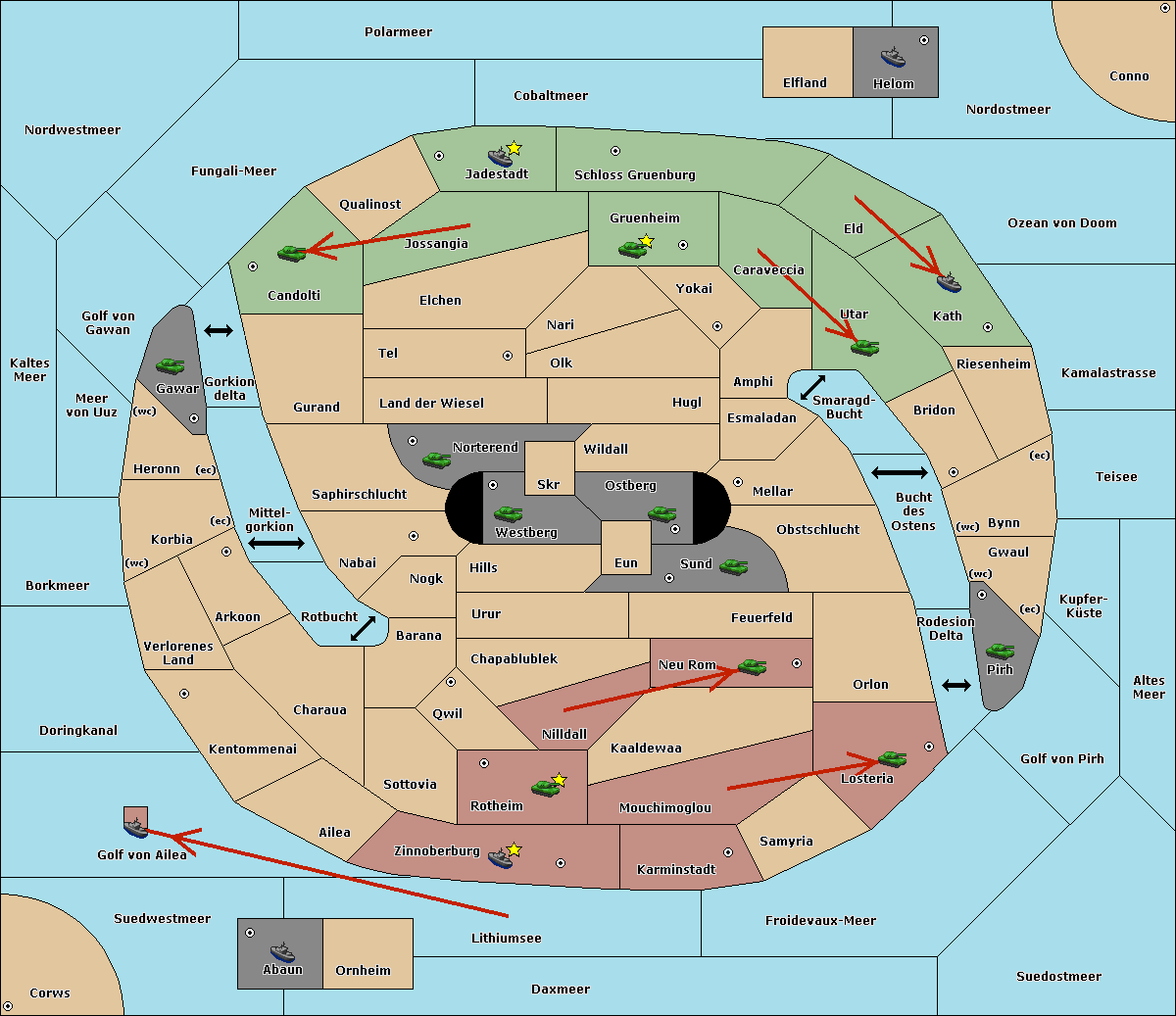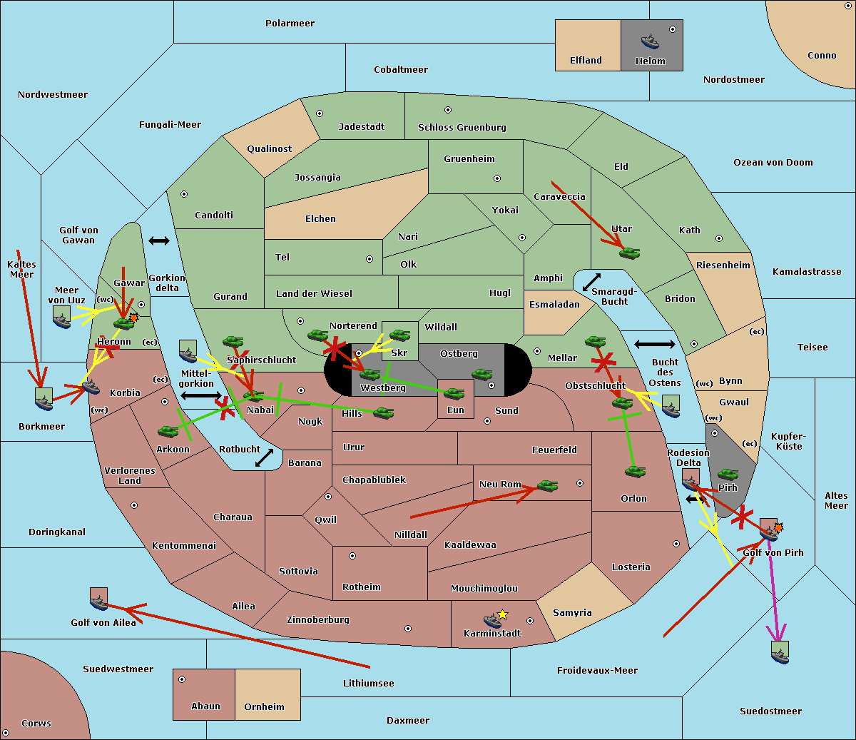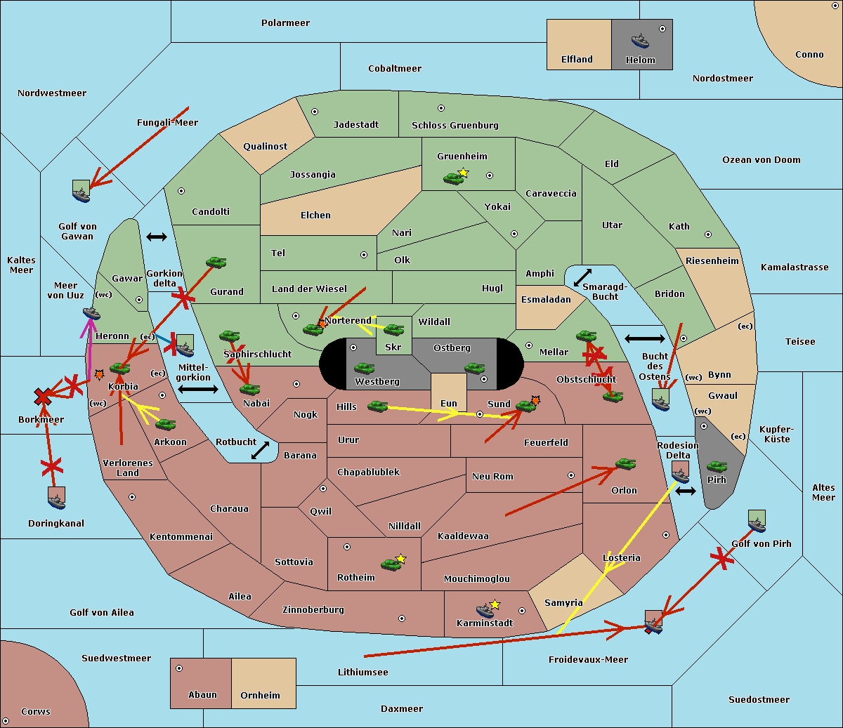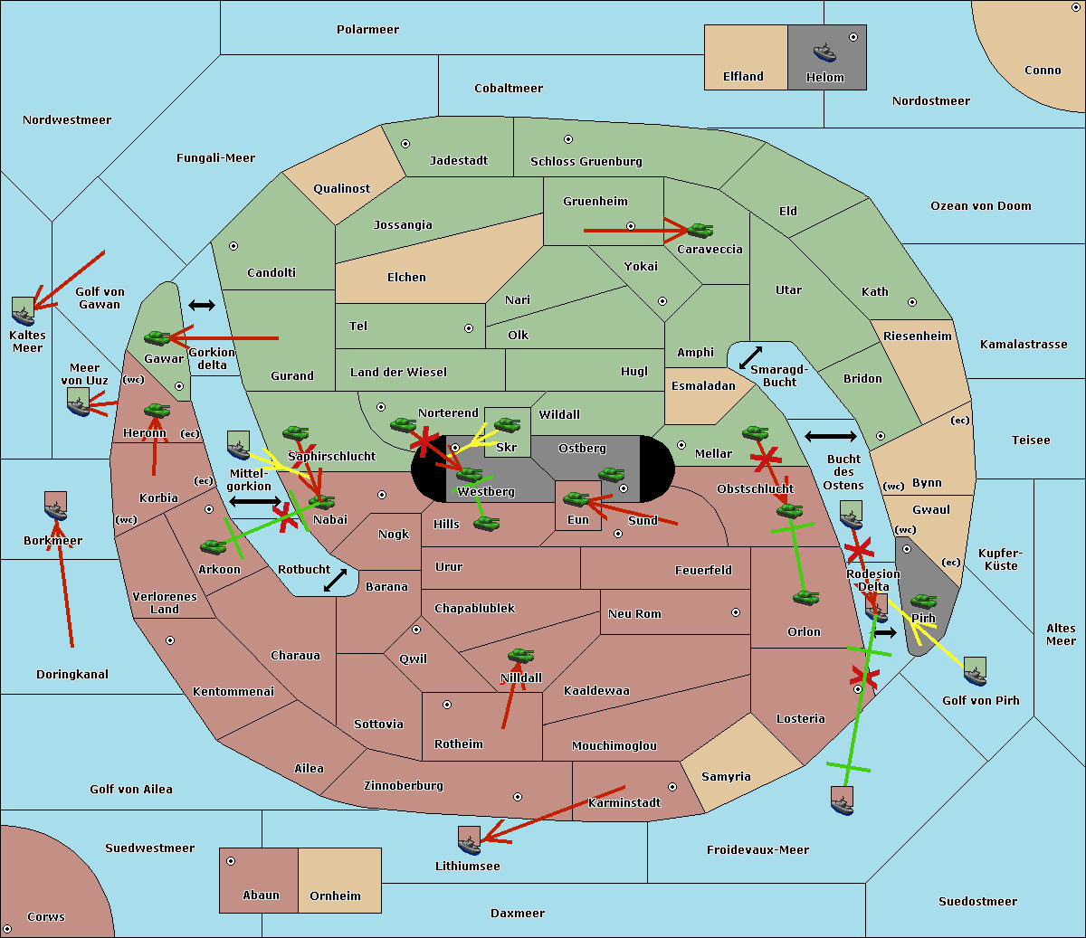 The fleet at Korbia (West Coast) move to Verlorenes Land.
