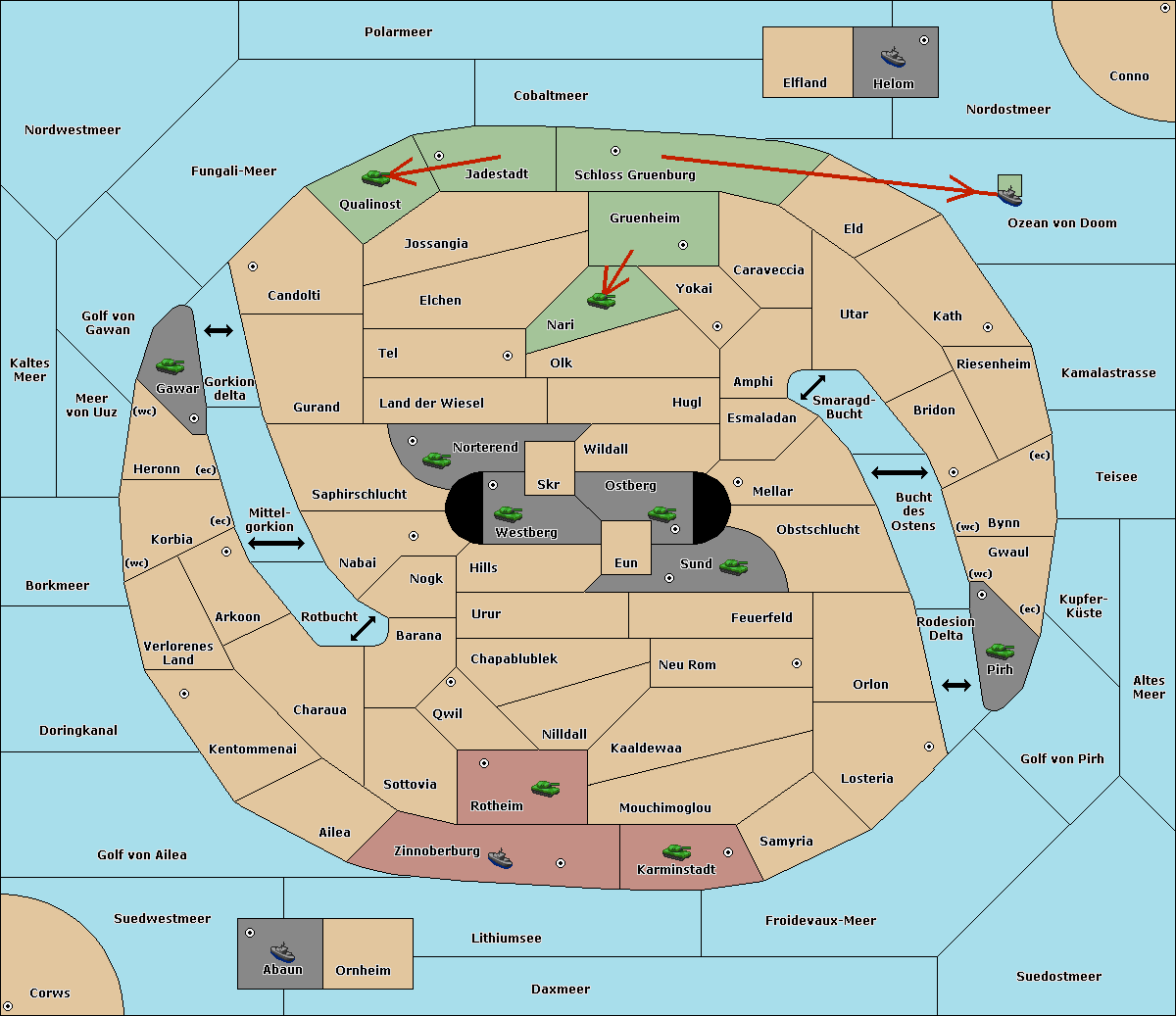 The fleet at Schloss Gruenburg move to Ozean von Doom.