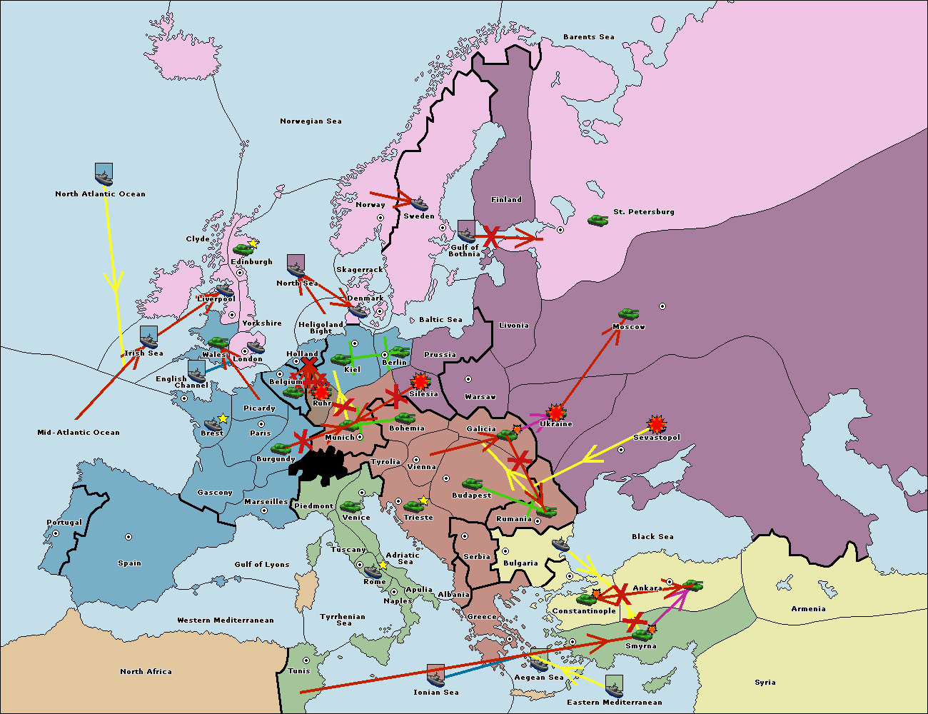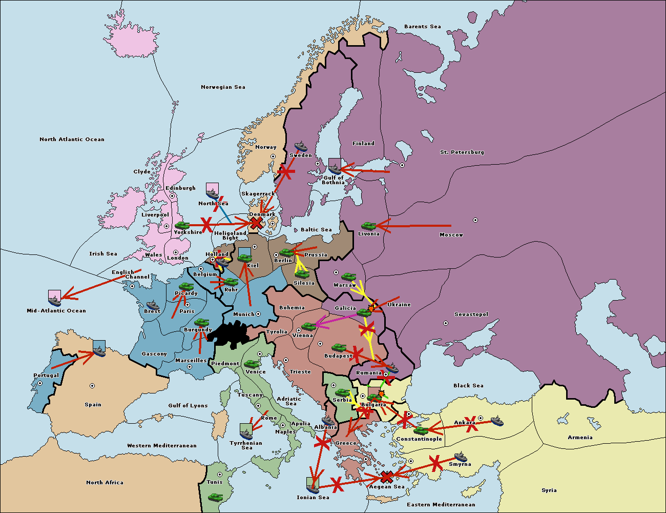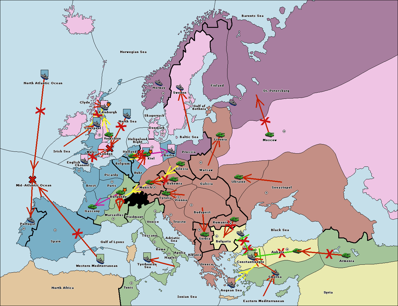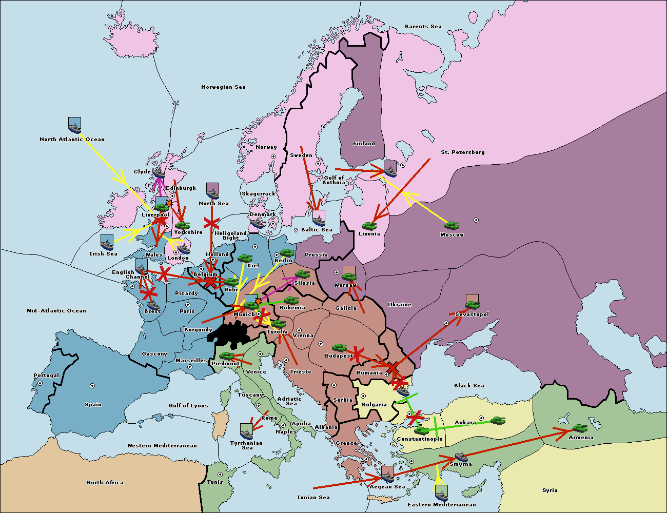 The fleet at Rumania support move to Bulgaria from Constantinople.