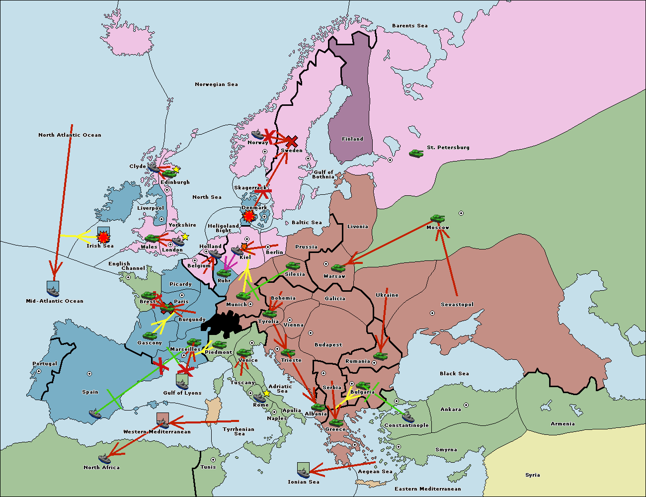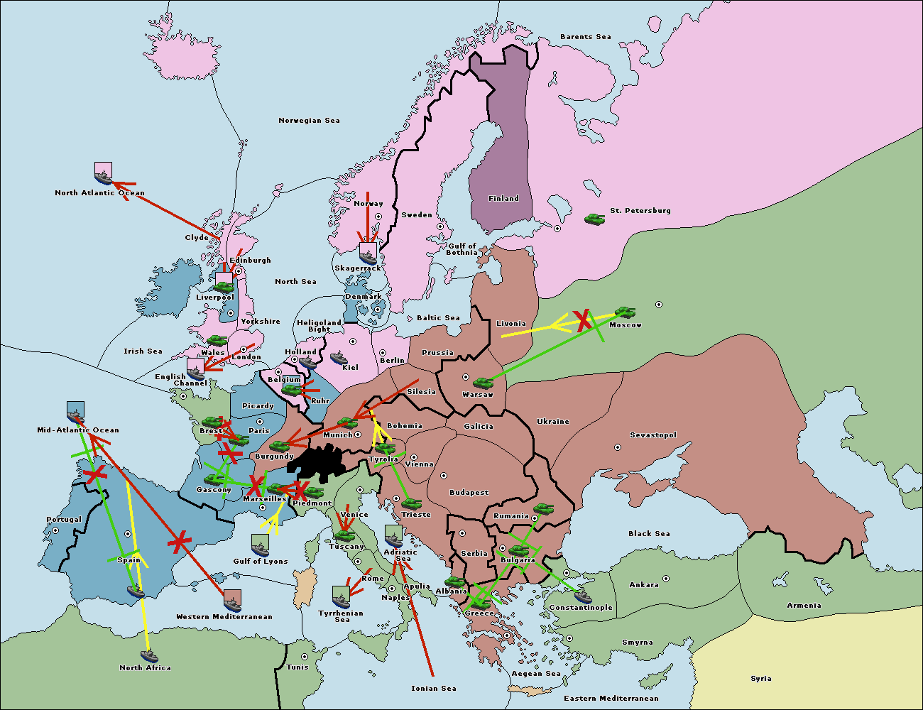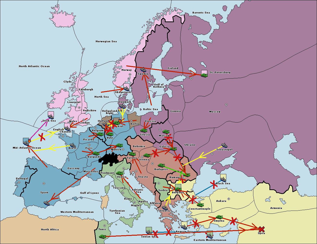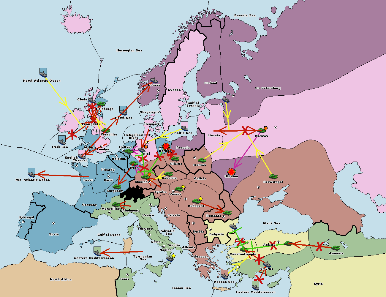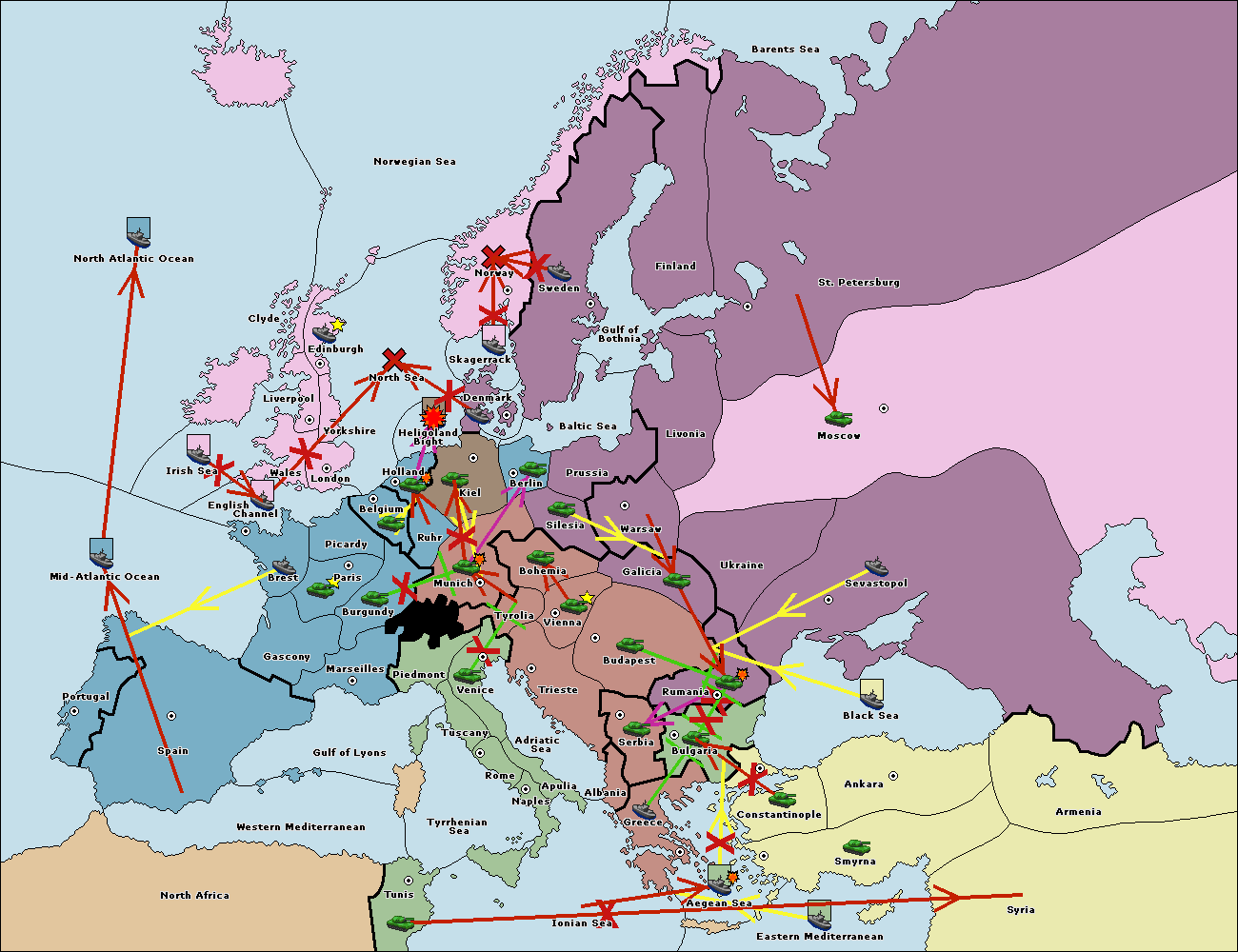 The fleet at Rumania support move to Bulgaria from Constantinople.