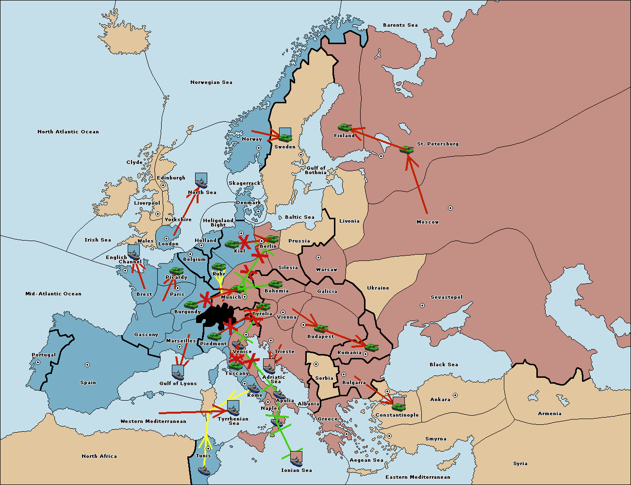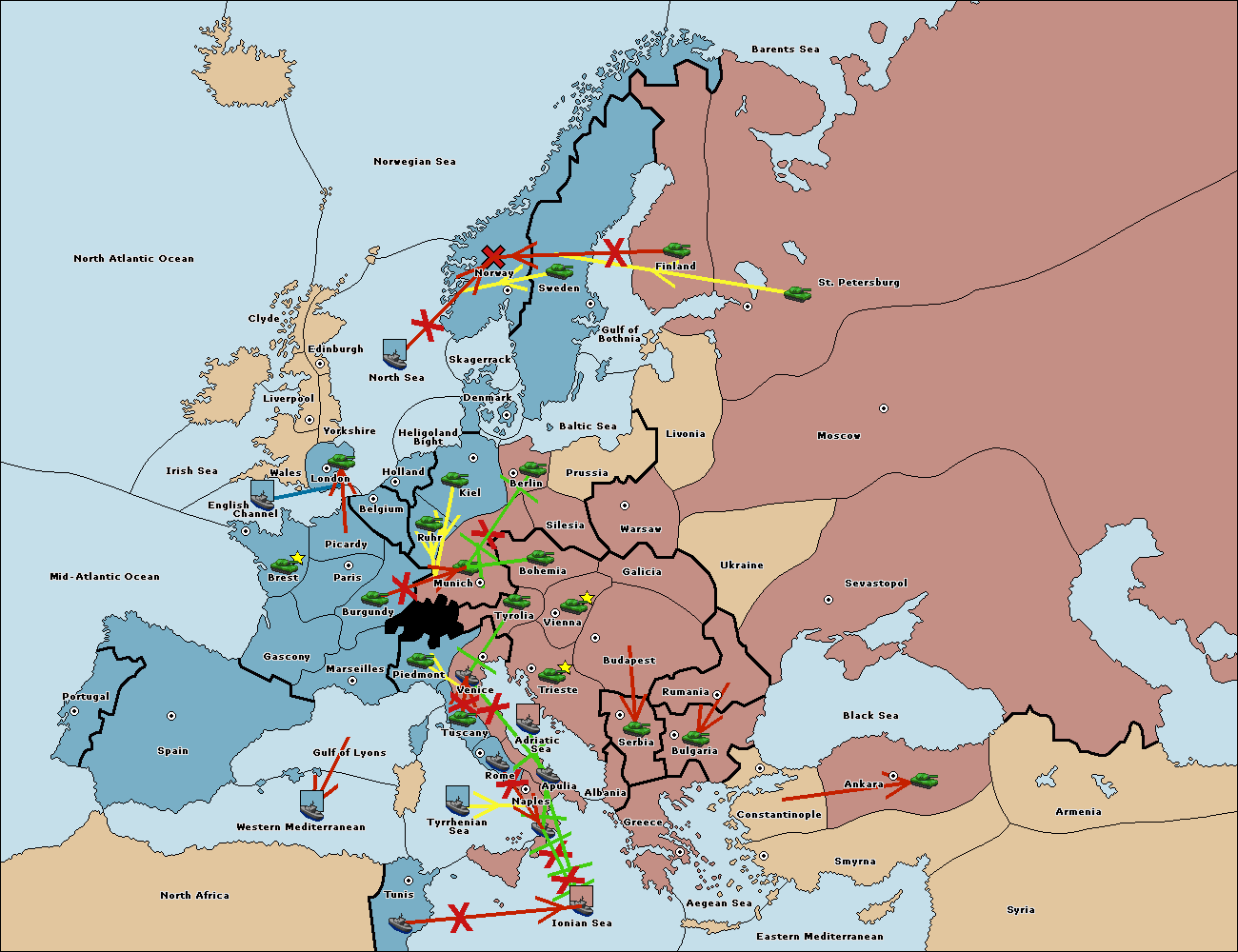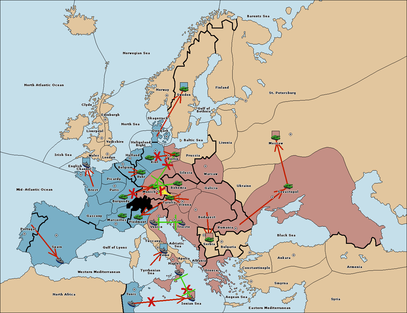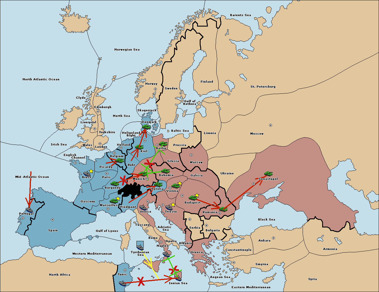 The fleet at Tyrrhenian Sea support move to Ionian Sea from Tunis.