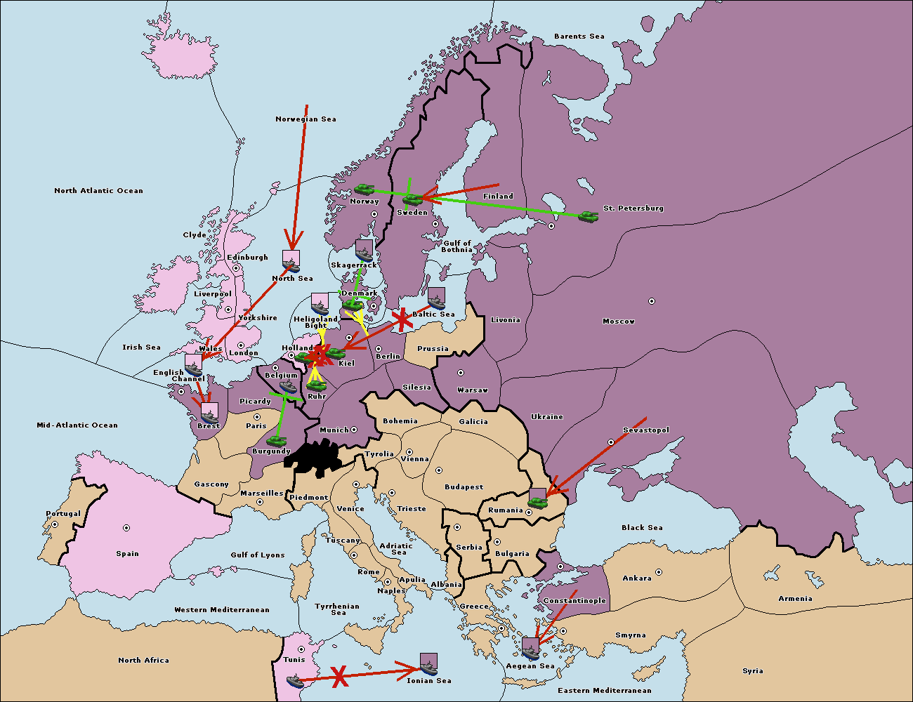 The fleet at St. Petersburg (South Coast) move to Finland.