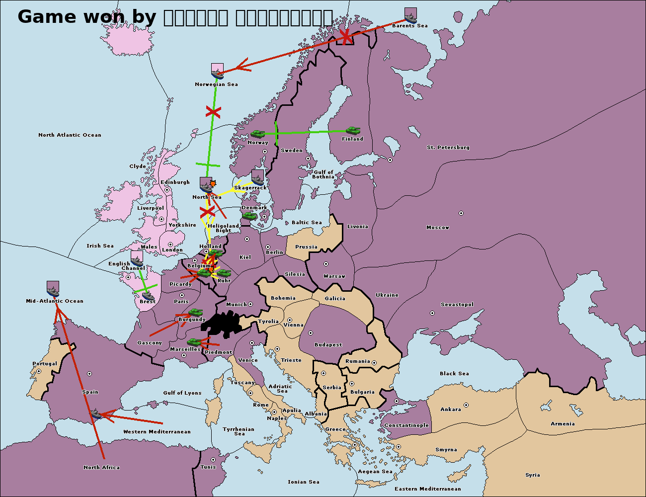 The fleet at North Africa move to Mid-Atlantic Ocean.